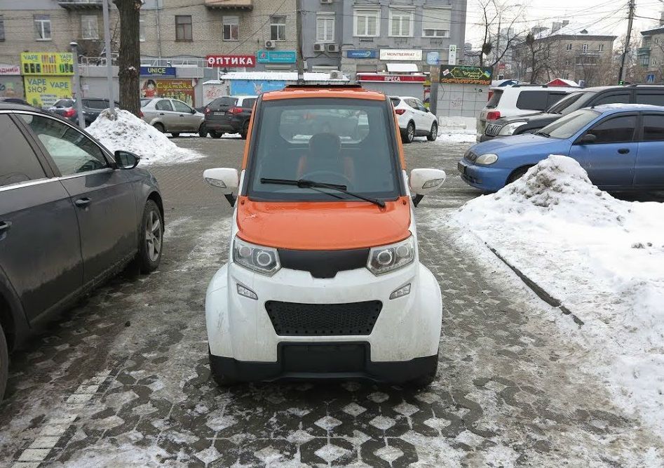 Ось ще такий варіант - Bostrix cubic, замічений на просторах українських доріг. Якщоб ціна в Україні на них була нижчою або на літію замість свинця, то не поганий варіант на недалекі відстані. Єдиний плюс в тому, що він закритий від дощу,вітру, ну і трьох-місний. Оскіль напевно підвіска там ніяка або дубова, то і швидкість більше 50 км/год, буде трясти в салоні)). Ясна річ, що від такого пластмасового чотирьохколісного транспорту хотіти багато чи комфорту не варто! Я б купив такий електричний смарт :) , батькові за продуктами їздити до церкви...Цікаво чи можна придбати його без АКБ, треба буде спитати у них на сайті.