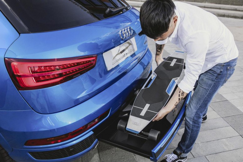 Среди хитов Audi на Пекинском автосалоне есть и концепт Q3 Connected Mobility, предлагающий лучшую мобильность в городских пробках. Это вовсе не то, что мы видим обычно на подобных мероприятиях. Концепт на первый взгляд выглядит, как обычная версия Q3, но данный автомобиль оснащен дополнительным электрическим скейтбордом, названным Longboard, который хранится в выдвижном ящике, расположенном под задним бампером...