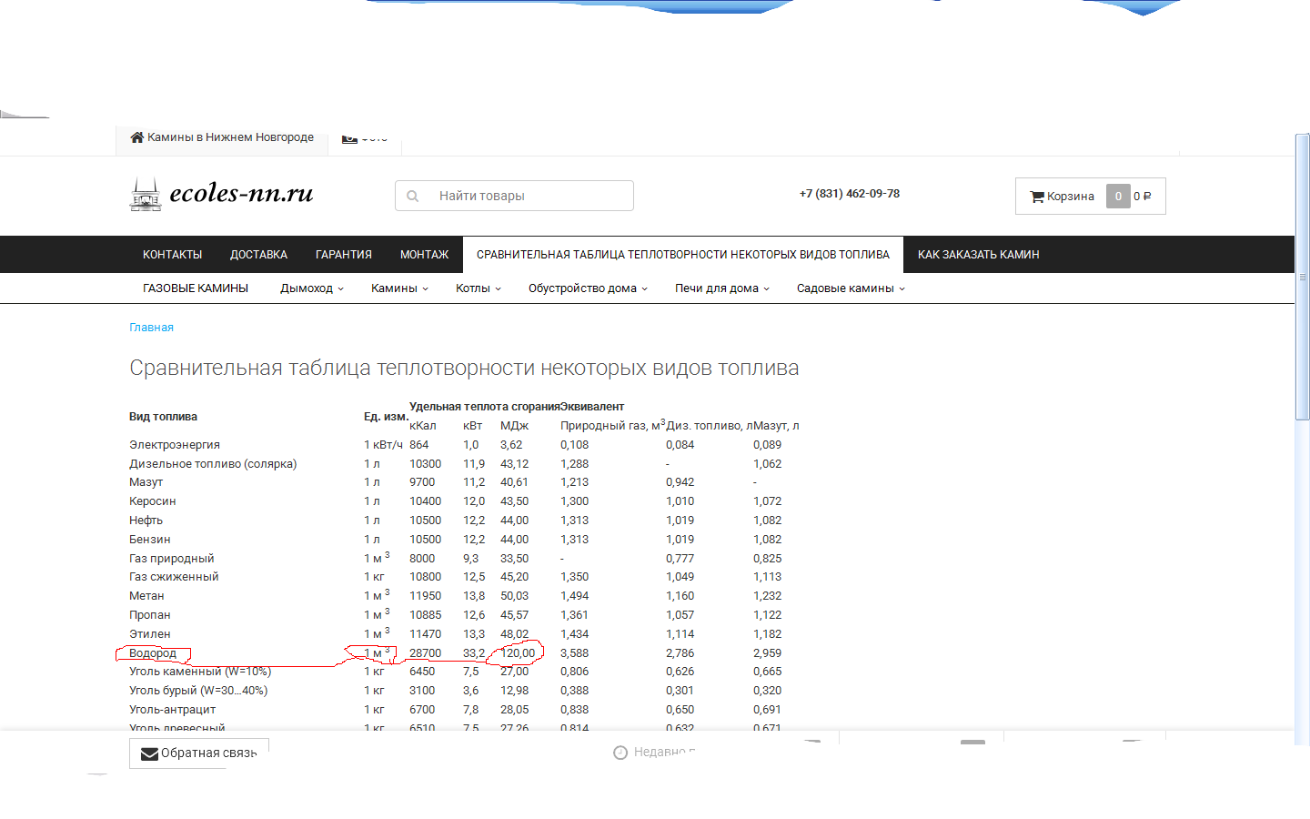 А в приведенной выше таблице я вижу что все данные по водороду приведены относительно его кубического метра.