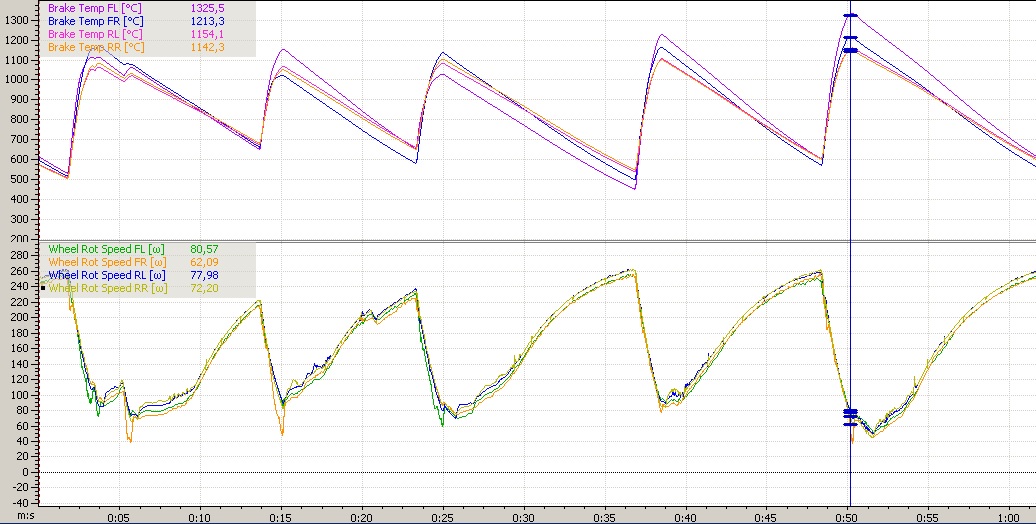 В программе можно создавать свои переменные, например G Force Long - переменная(канал данных) которая содержит информацию про продольное ускорение(есть также переменная бокового ускорения) в которой положительное ускорение это торможение а отрицательное это разгон, можно создать переменную которая будит отображать информацию по модулю, например x = abs(G Force Long).