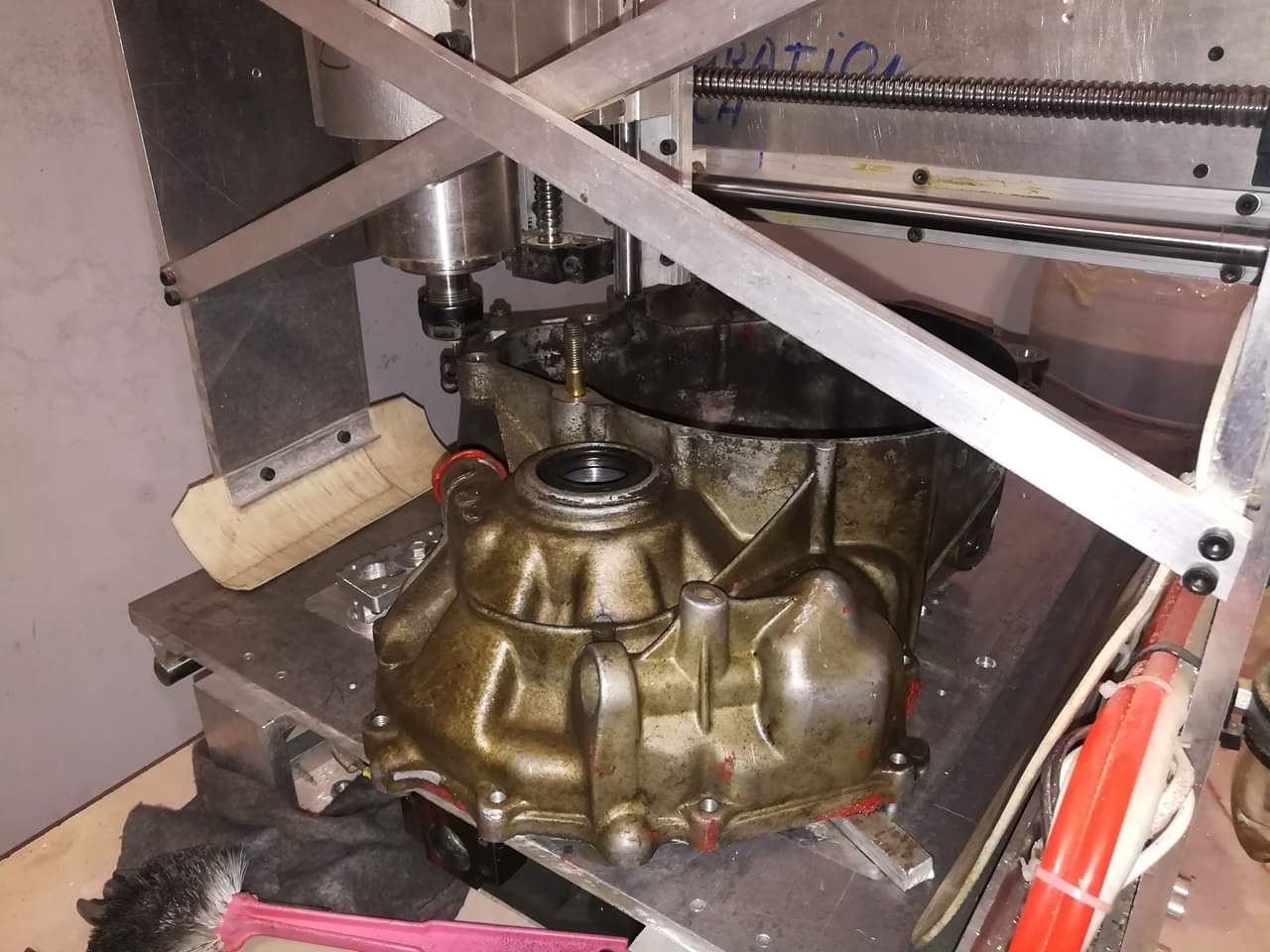 В целом плоский, но справа на фото, возле стартера, есть цилиндрический выступ. Сканера нет, да и с трудом представляю как он точно словит посадочный центр первичного вала в 2D. Так что,
