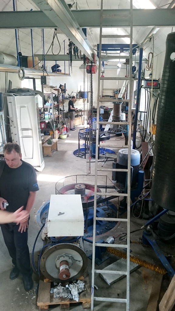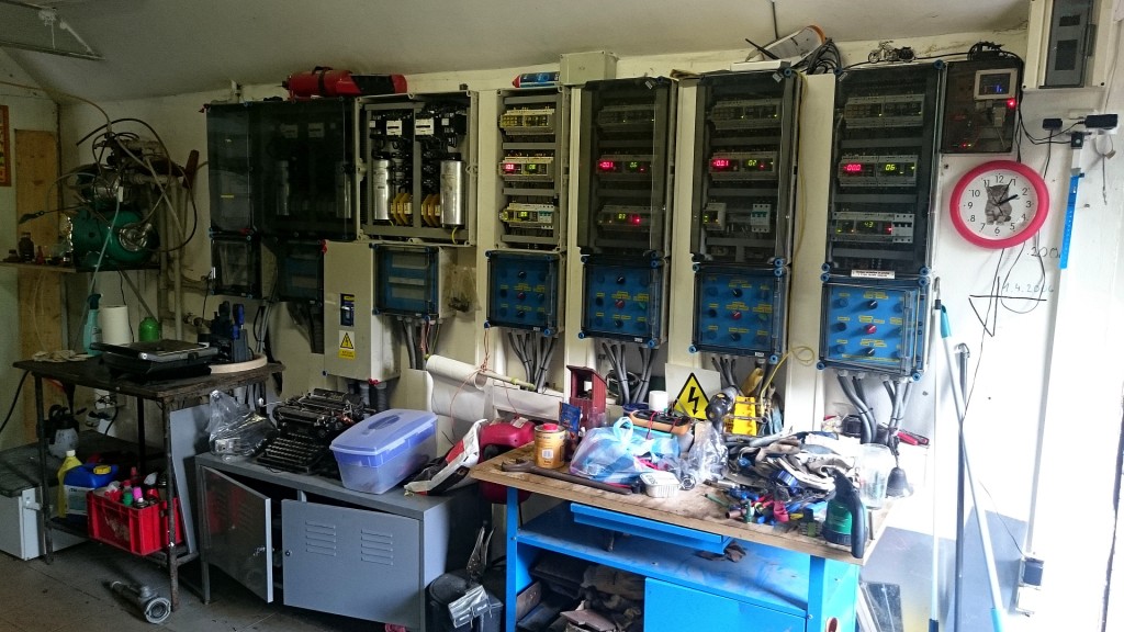 Машинка очень понравилась, все достоинства электромобиля в хорошей упаковке VW . Хозяин сказал , что всегда можно рассчитывать на 130 км пробега , а если экономить то и 160 не проблема. Сама электростанция тоже понравилась, в живописной зоне на реке Лужница маленькое строение в деревенском стиле на искусственно отделённом от берега острове. Внутри предбанник со щитами управления и там же мастерская с несколькими станочками, а дальше собственно машинный зал с пятью турбинами которые через ремни крутят генераторы.