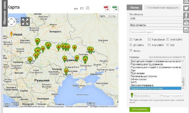 34 зарядные станции АЗС "ОККО" можно посмотреть на их сайте http://okko.ua/ru/network_map