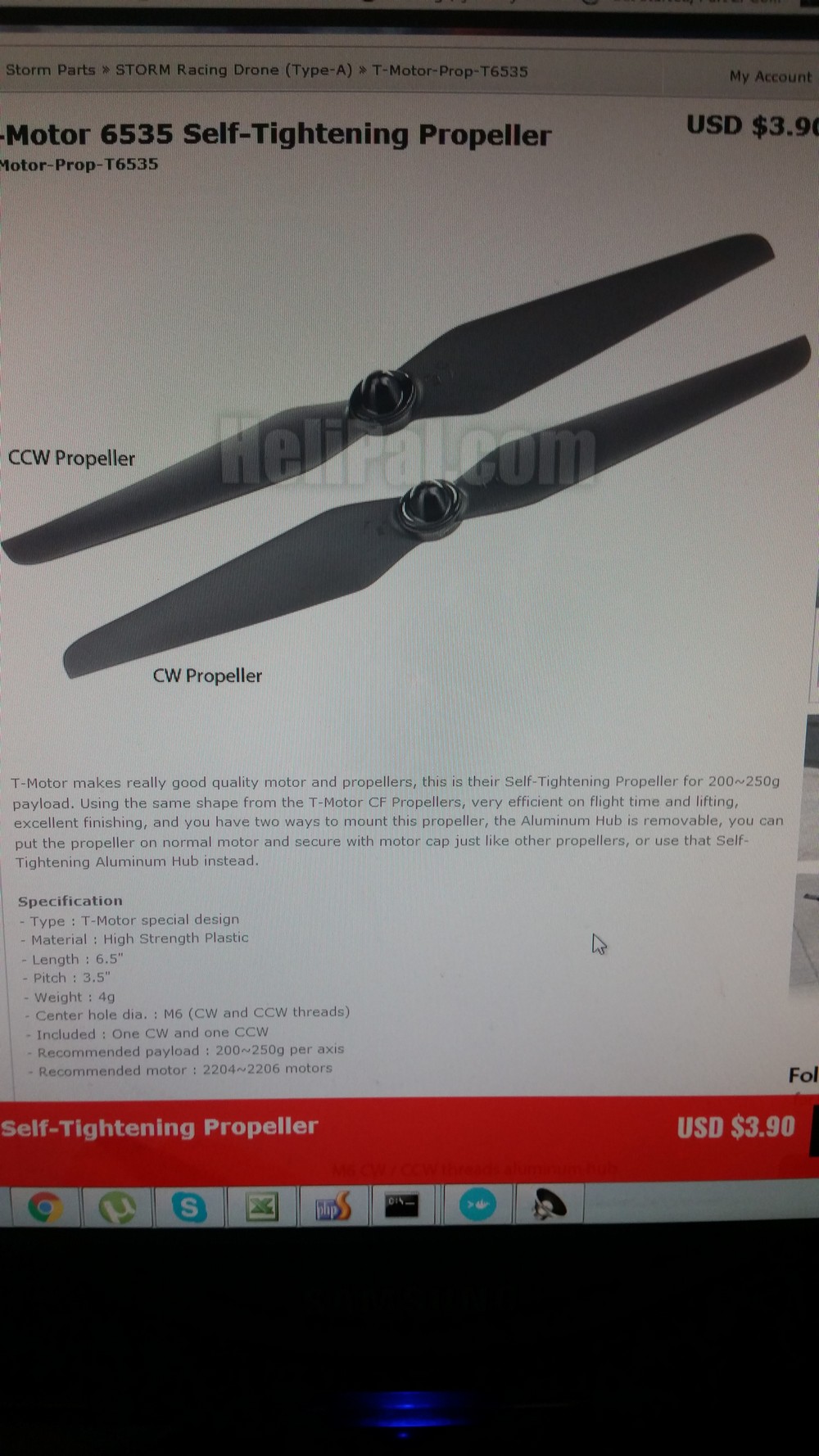 Взял пропеллеры дешевые T-motor TM-T6535B (рекомендуемая нагрузка 200 гр на ось) :