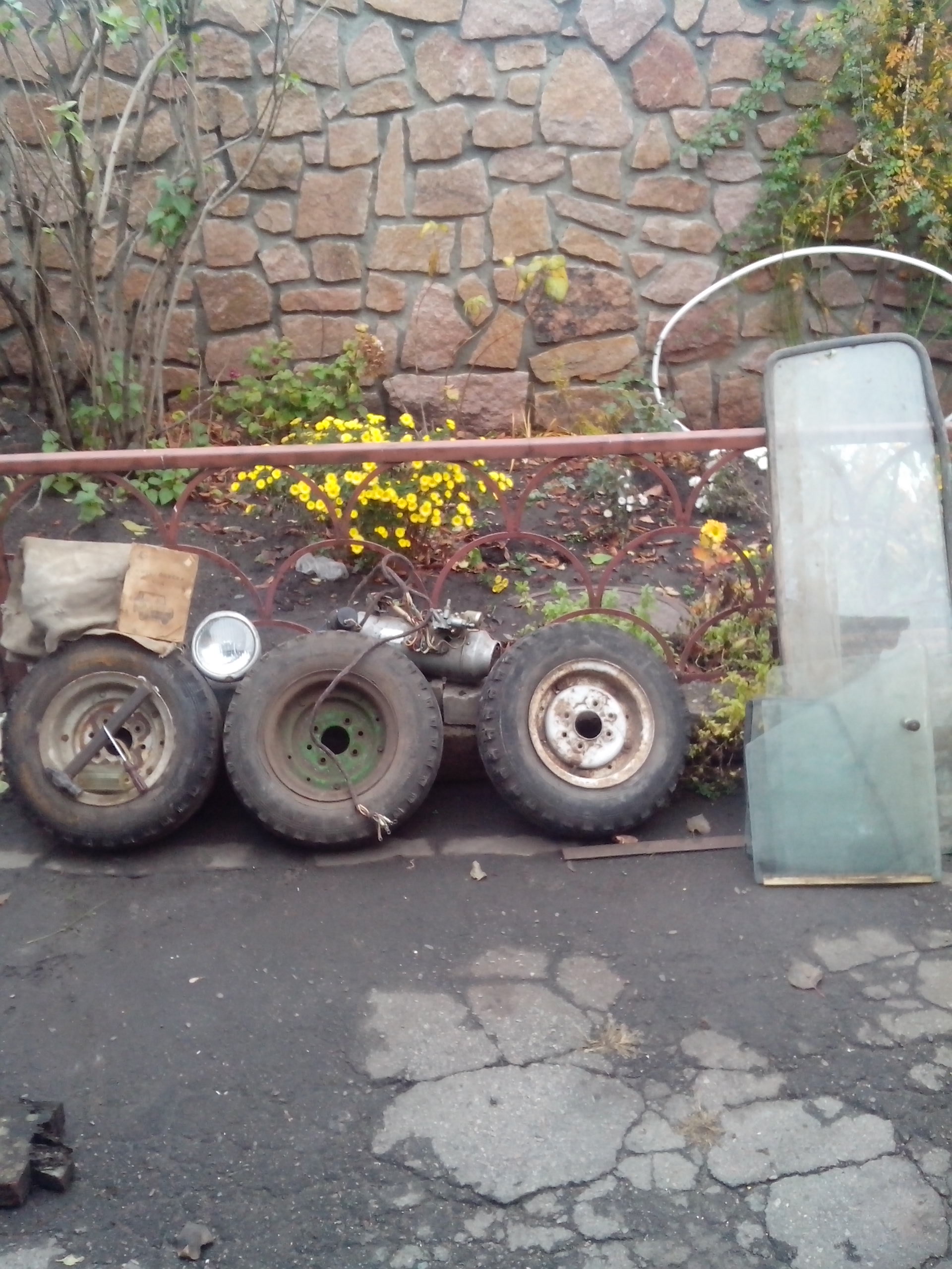 Это доп. плюшки доставшиеся в нагрузку : 3 колеса , фонарики , комплект стёкол , печка , кусок брезента , молоток и отвёртка :) а главное родная книжка !