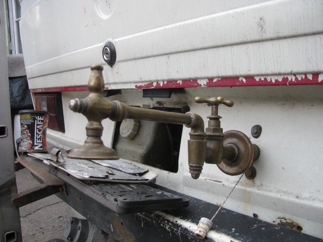 Бампер так же от мотоколяски, немного переделанный. Капот - фрагмент от грузовика "Урал"... Ну добавлю, что вертикальная вытяжная решётка от "Газ -66", как и невидимое с этого ракурса заднее стекло в салоне. Боковые повторители от Ваз 2105... Задние фонари, - (так же невидимы), от "УаЗа"...