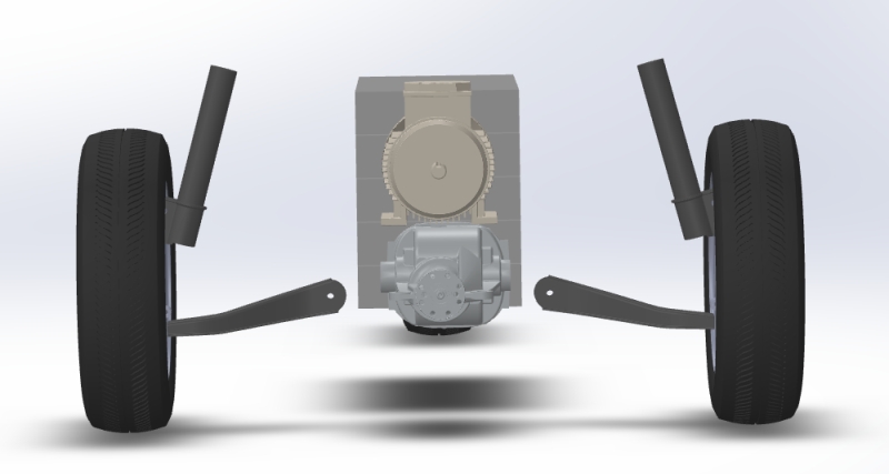 Колея передних колес 1114 мм, на 200 мм уже таврической. Колесная база 1970 мм, для сохранения таврического угла Аккермана. 1114/1314 = 1970/2320. Посадка тандемная как на мотоцикле.