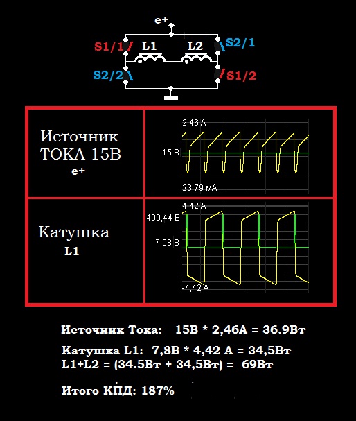 ВАДИМУ! Предлагаю ознакомиться со всеми вариантами мостовых включений а Н мост я давно разработал с емкостной амортизацией, правда он разрабатывался для мотор-генераторных систем и рассчитывался на заданное число оборотов, так как где есть конденсатор и катушка есть самая оптимальная частота. Посмотри на кривую амперов, она почти равняется кривой задающего импульса, при том что в симулятор заложет принцип самоиндукции при насыщении катушки. все как книжка пишет. https://youtu.be/cB-kpbVlQvU Но чтобы получить вот такой результат (во вложении) на излюбленном тобой Н мосту нужно много подумать и много поэкспериментировать (свою схему не раскрываю, хотя многие уже подошли к этому, поймали эффект). Даже если в реале это 120-135% все равно лучше чем 90% Доказывать ничего не собираюсь, информирую.