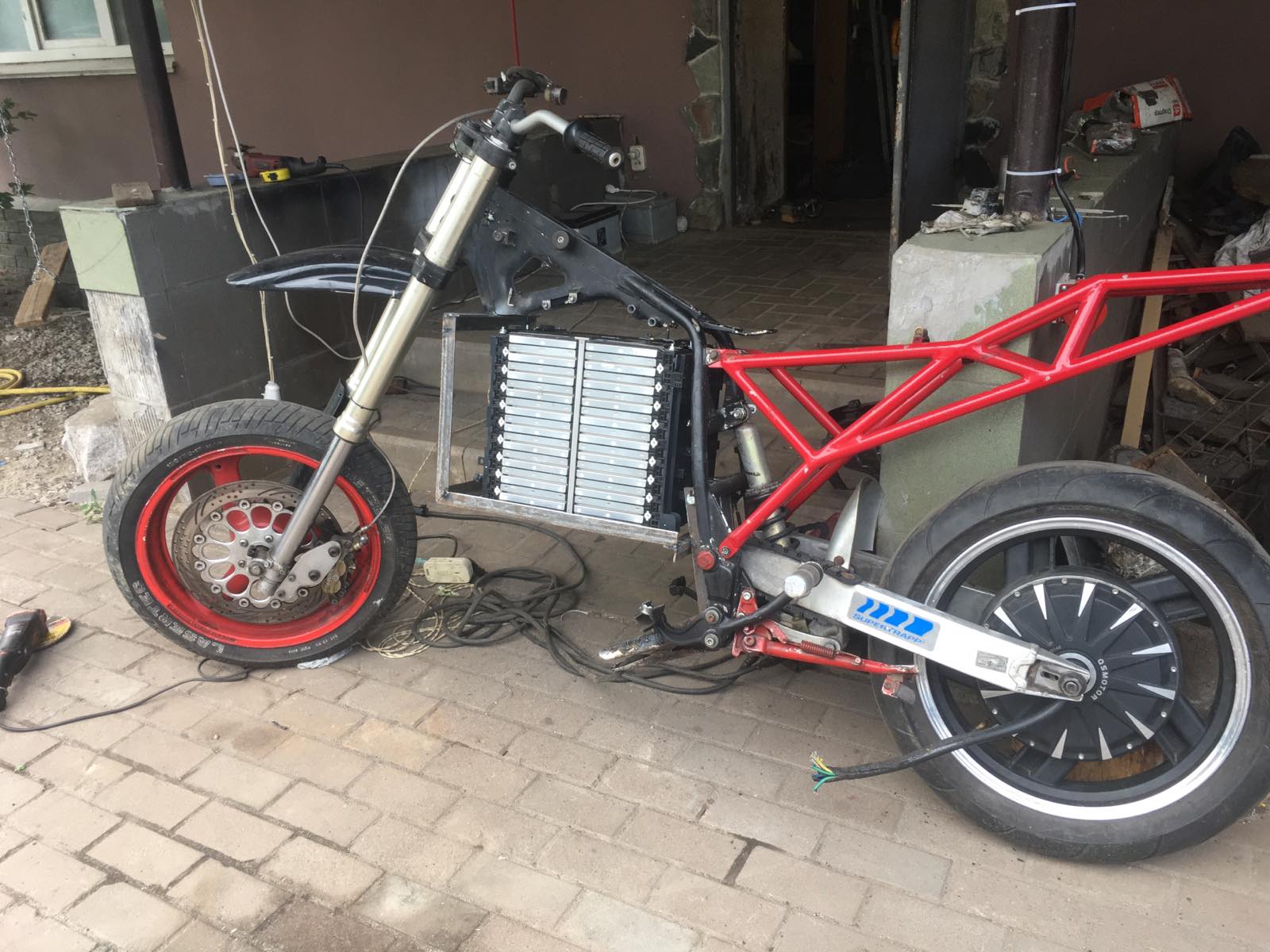 админ сорян, не нашел раздела "саморобні єлектромотоцикли, що виїхали з гаражу хоч би раз" и запостил здесь, перекинь куда сочтешь нужным, спасибо. Привет всем) Давно мечтал о мотарде, купил по случаю как донора гилеру 600 кобра, вот творю помаленьку) мотор колесо 5 квт, контроллер вотол 200, АКБ сборка 120 A 20S от 40 квт коны, с водянкой если че, ну и так далее...