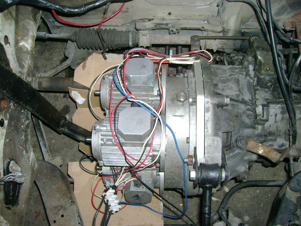 Может и по такой схеме они работают, но тогда можно обойтись одним мотором. Думаю что они подключены к выходному валу через систему дифференциалов, я не очень разбираюсь но думаю что два мотора, можно подключить через дифференциал например так- при старте один мотор в тяговом режиме, второй генератор, с набором скорости второй останавливается и вращается в тяговом режиме в другом направлении и их сумма оборотов теперь складываются.