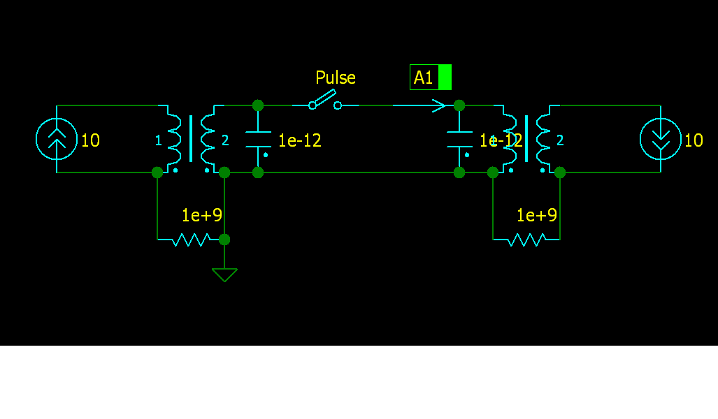 Конденсаторы по 1 пф, источники тока дают ток - 10 ампер.