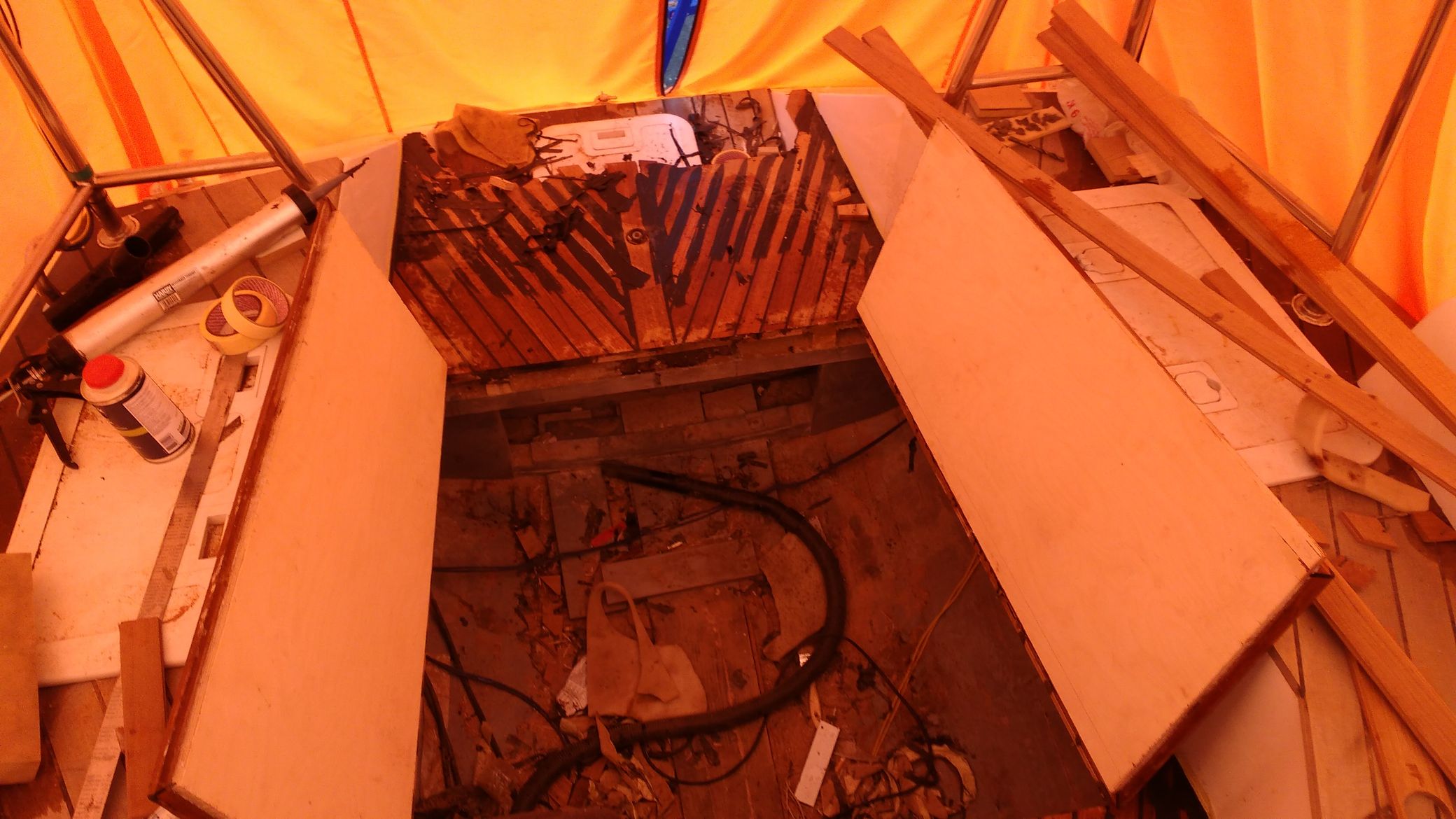 Сделали большой люк в кокпите для удобного доступа к мотору. На последнем фото видно дейдвудную трубу, в которой будет вращаться вал. Пока не вклеили ее, просто приложили.