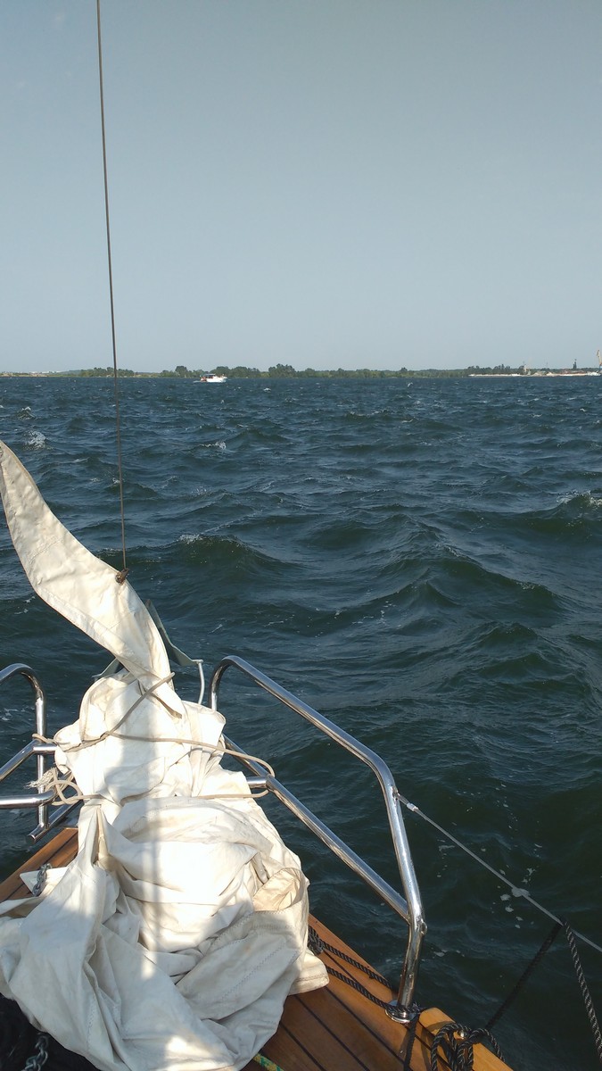 Шли в бейдевинд все время, сделали наверное несколько сотен галсов за 2 дня. Вырвало среднюю ванту левого борта из обжимки на палубе - но остальные ванты удержали мачту. Я уже это починил. Было такое что на порывах ветра когда шли под парусом лодка лежала краем палубы в воде, тогда брали рифы на гроте. Получилась очень сбалансированная лодка - руль можно на пару минут бросить и она шла примерно тем же курсом без особых изменений.