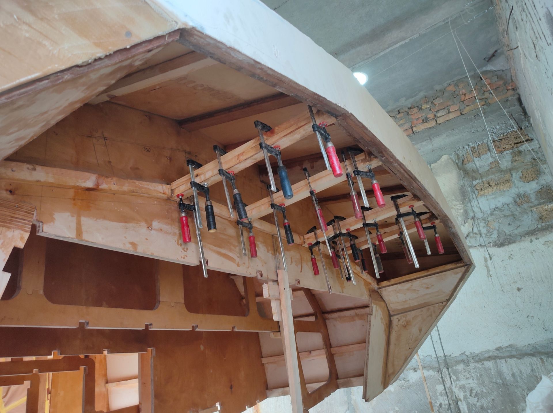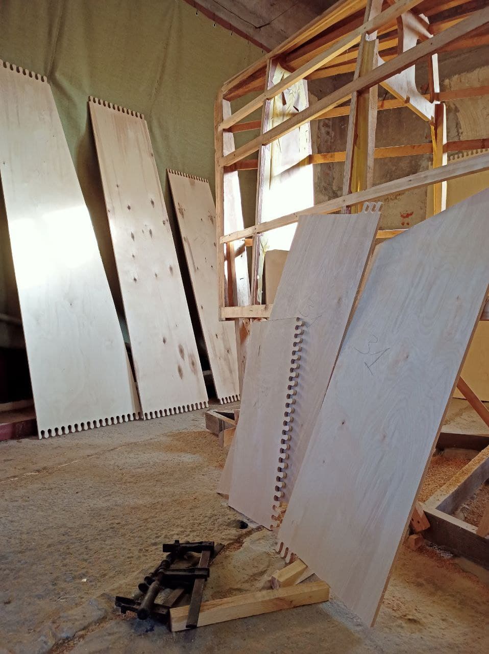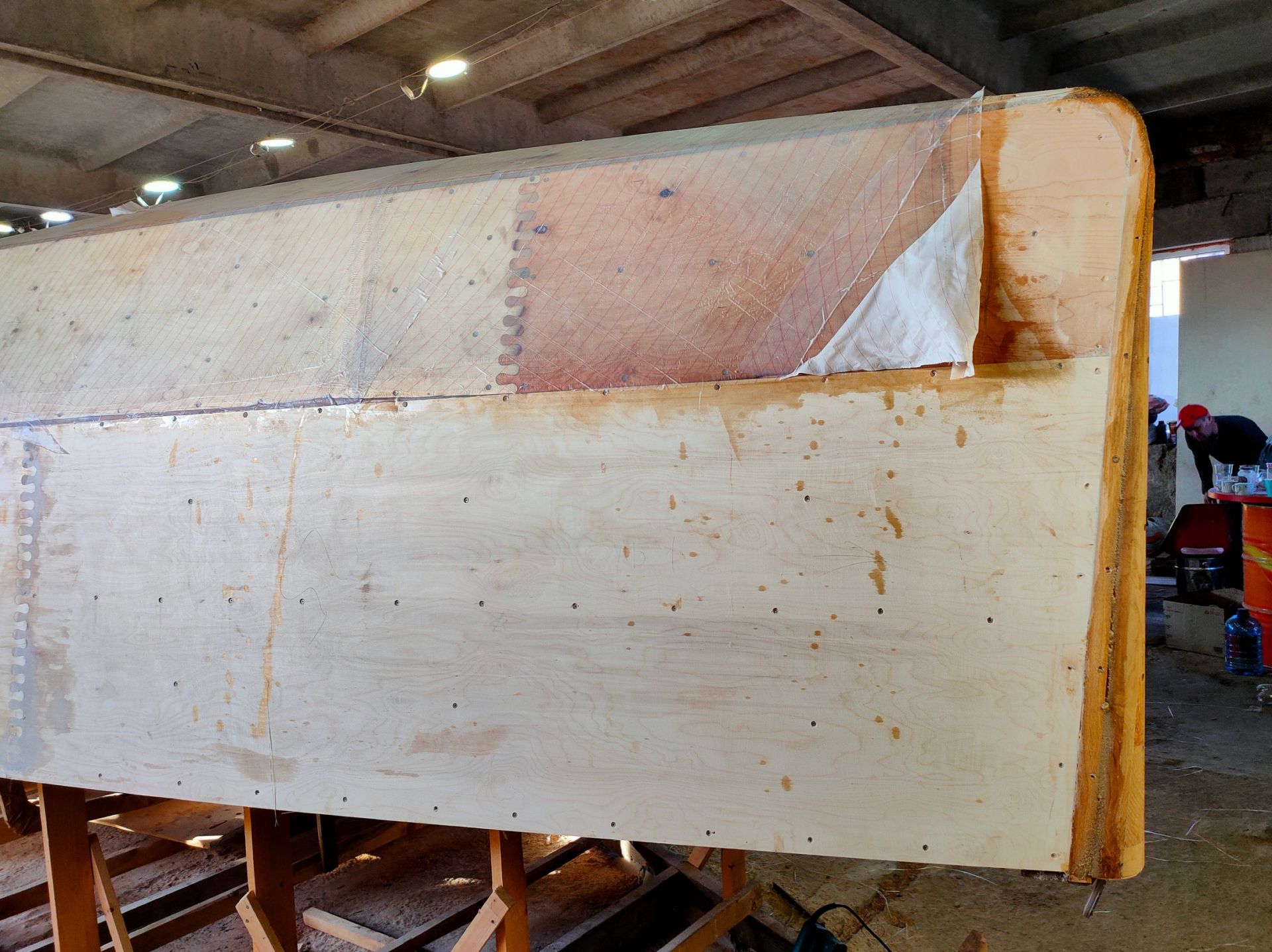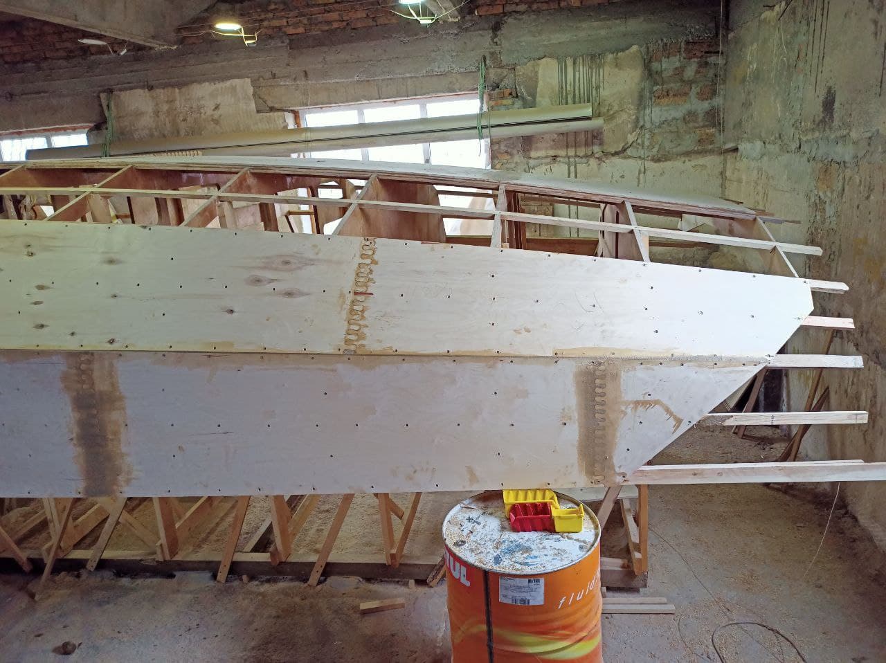 Один стандартный лист фанеры 12мм 2500 х 1250 мм весит примерно 25-27 кг. Чтобы загрузить ЧПУ надо было привезти 30 листов. До сих пор помню как надо было это все несколько раз перетащить: до грузовика, загрузить его, потом разгрузить на ЧПУ, перетащить до склада на ЧПУ. В общем постройку лодок 10м+ рекомендую делать по возможности не в одни руки для получения большего удовольствия, особенно когда касается габаритных кусков обшивки, килевой балки и т.д.