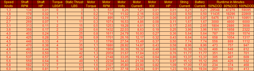 В которой нашел любопытную xls табличку для расчета расхода энергии судном в зависимости от введенных параметров (параметры корпуса лодки, АКБ, мотора, контроллера, редуктора и винта).