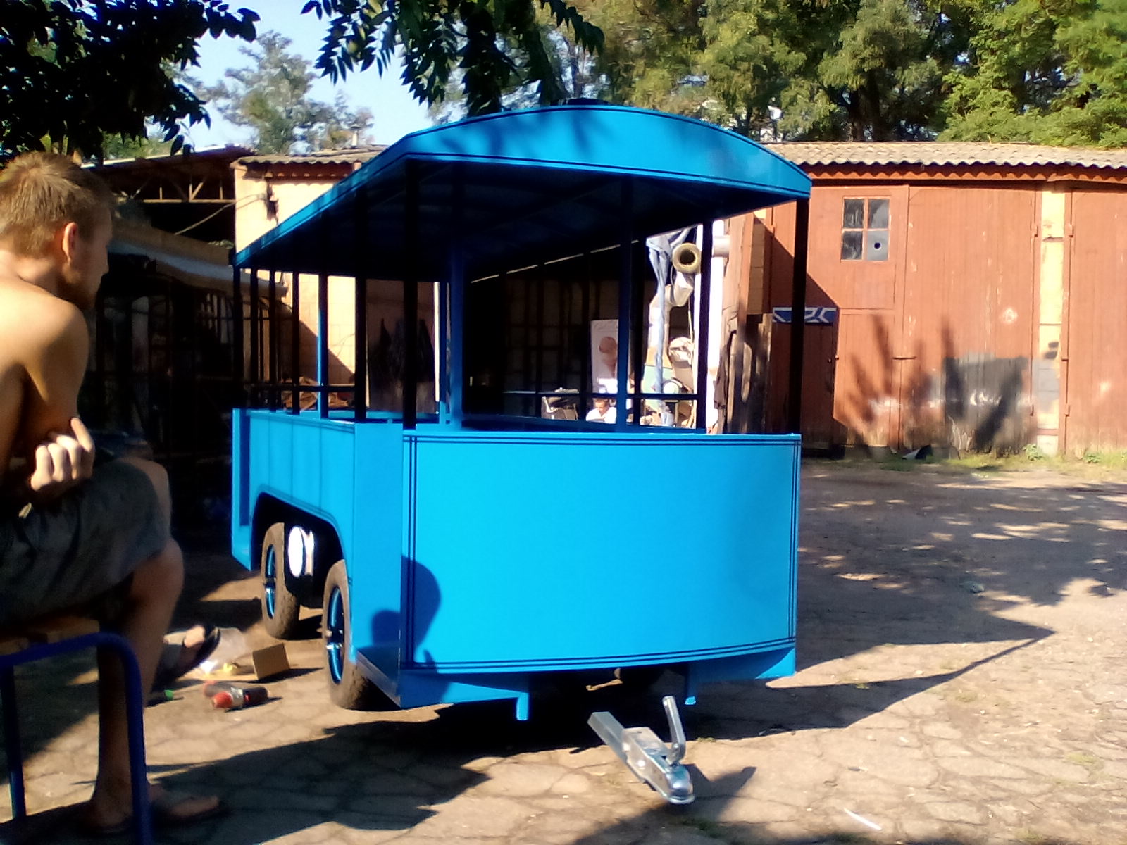 И прицеп к нему - торговая точка по продаже мороженного, автономная, питается от бортовых свинцовых тяговых АКБ, рассчитана на десять часов работы. Данное оборудование изготовлено по заказу одного из крупных производителей мороженного в Украине. Сегодня первый экземпляр проходит испытания на улицах города. Мы предлагаем и литиевые АКБ, но заказчик не желает накинуть и 100$ и выбирает свинец, а через пару лет уже будет сам решать, какие АКБ ставить.