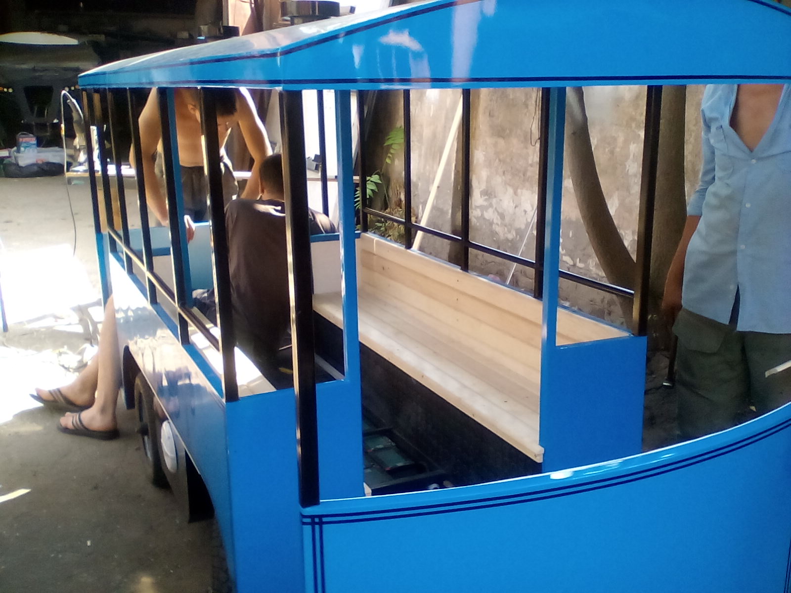 Покрашены оба вагончика, теперь стелим пол, размещаем АКБ, делаем скамейки.
