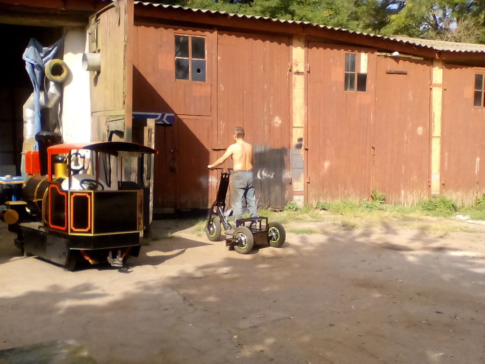 Кстати вот еще наше изделие, не афишируемое на форуме - самокат-буксировщик не стационарных торговых точек по продаже кофе, мороженного и тд. Берет на буксир прицепы весом до тонны.