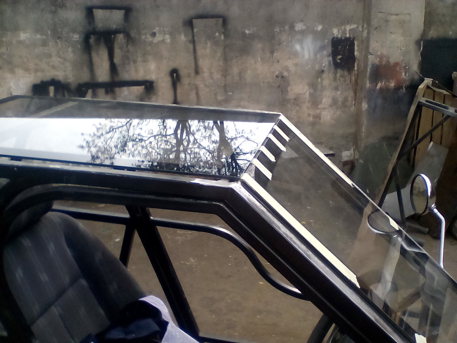 Подготавливаем Страйк к установке стекол от автобуса, наварили полосы, к которым будут приклеены стекла. Примерели лобовое и верхнее стекло.