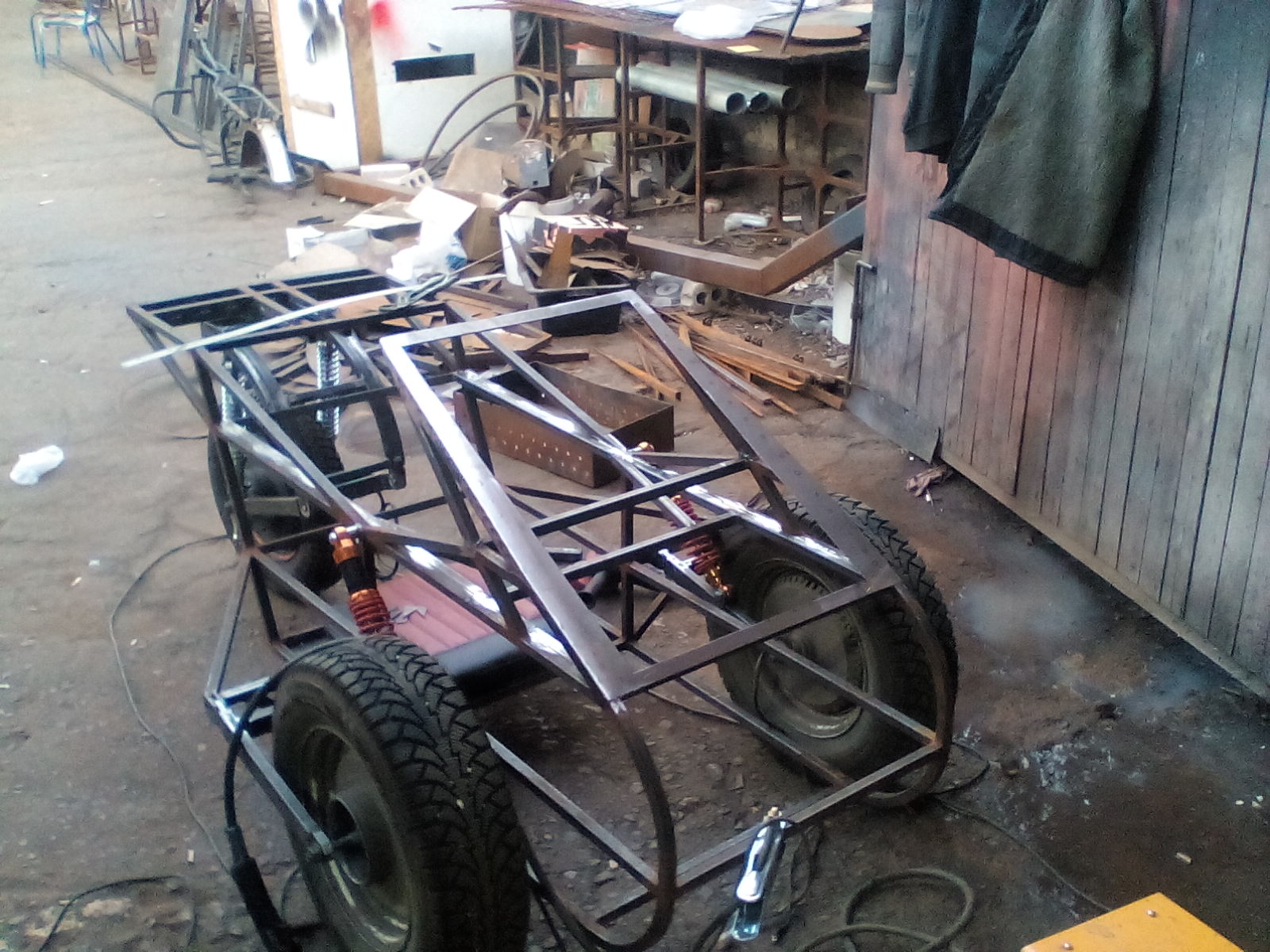 Скоро продолжим постройку этого аппарата, буквально пару дней и потихоньку возьмемся за него. Мы решили назвать его Speedster. Будут установлены три мотор-колеса по 1000 Вт в тринадцатидюймовой жигулевской резине. Два из них до этого стояли на Страйке, третий переделаем таким же образом как и те и поставим назад.