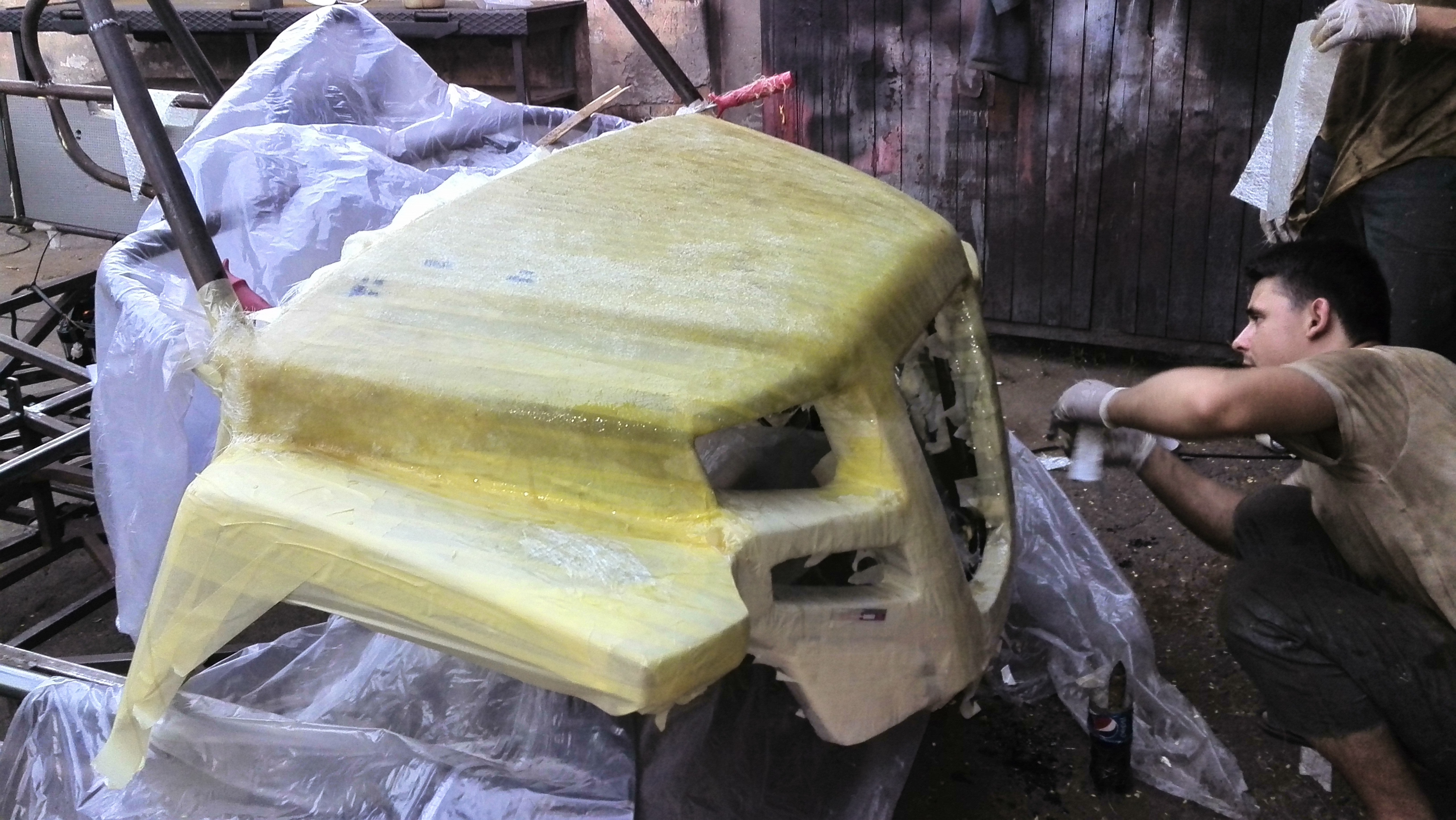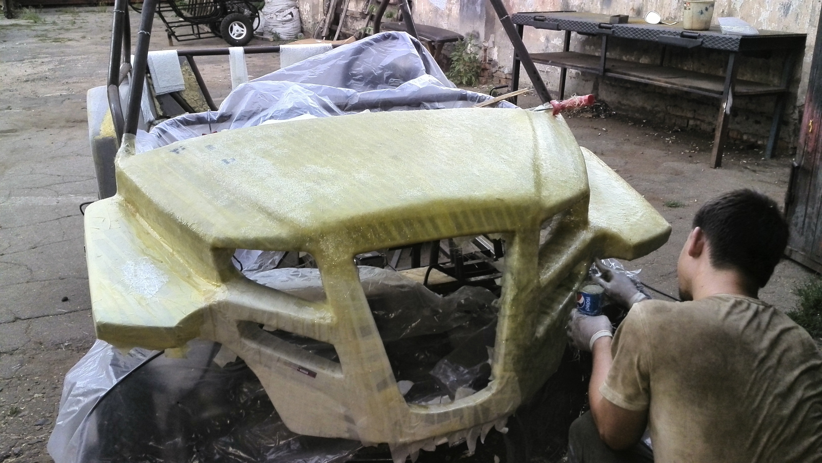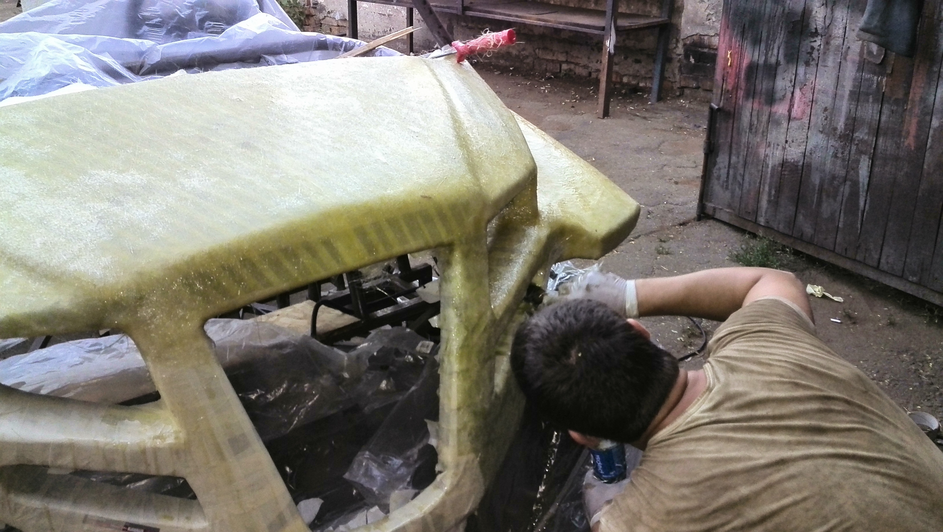 Начали работы по стеклопластиковой обшивке Проек Х, наложены первые слои.
