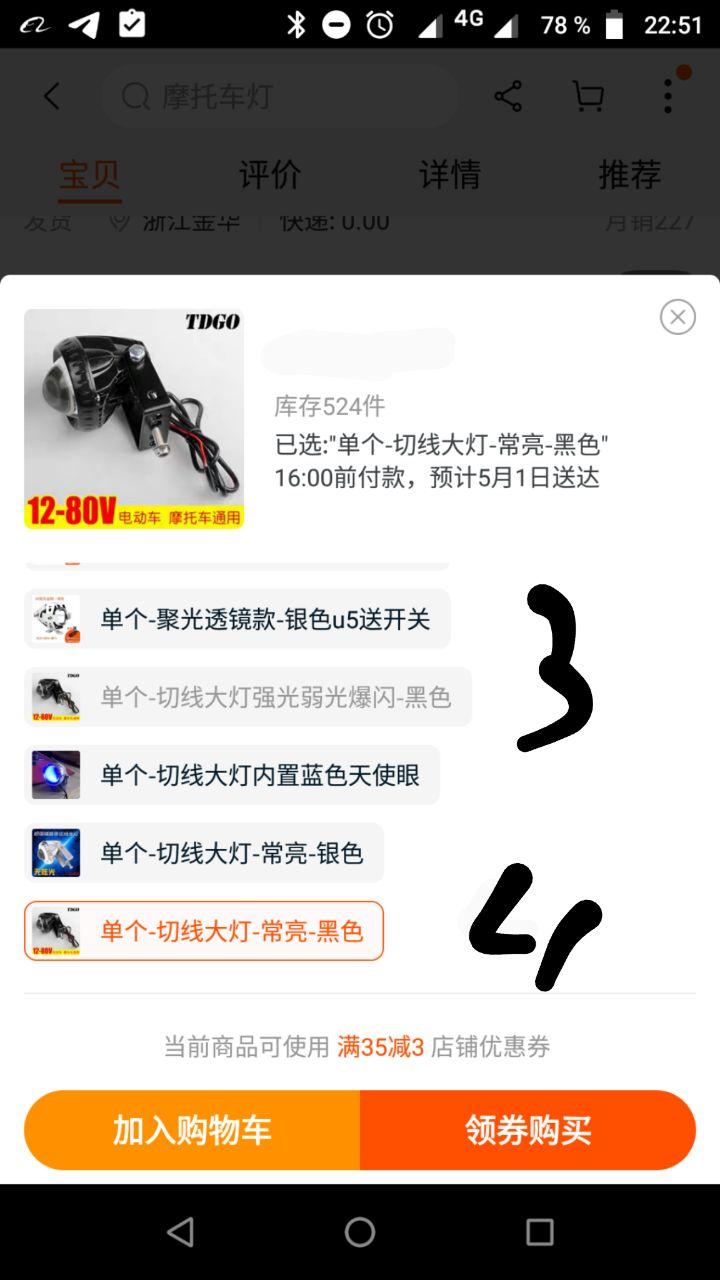Фара того же производителя. Выпускается 4 разновидности. 1 и 2 в двух цветах, 3 - если перевести с китайского "всегда яркая" выпускается в малых кол-вах шт. по 25. И 4 - работающая в трех режимах