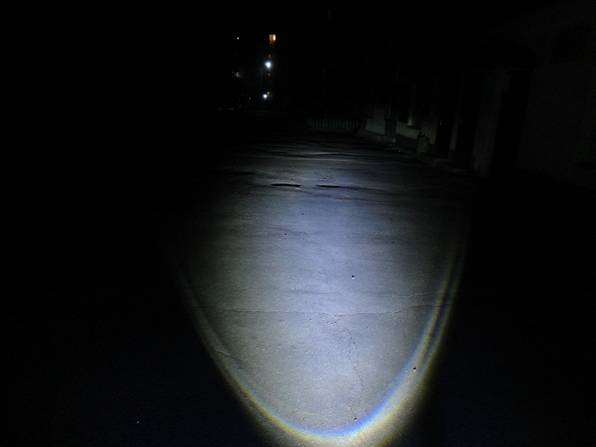 Попробуйте сделать свой обзор или хотя бы светить на ровную поверхность. Непонятно, посредине паразитный засвет или отражение от люстры.