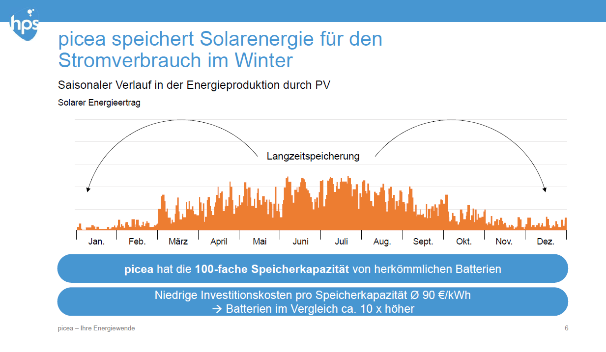 В системе имеется буферная литивая батарея энергоемкостью от 25кВтч. Но изюменкой системы являются так называемые сезонные хранилища - хранилища водорода.