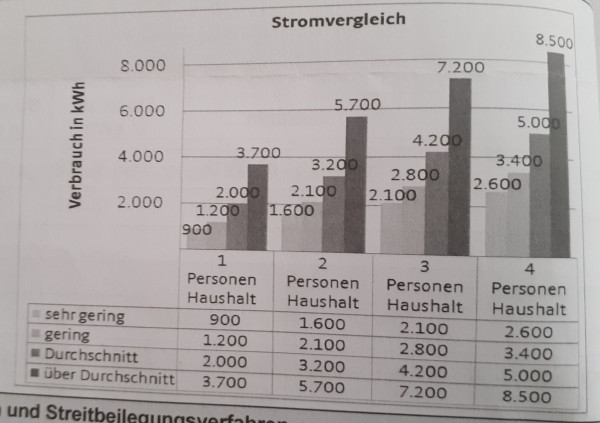 2.451кВтч за 364 дня. Среднее потребление семьи из 4ех персон в Германии - 5.000кВтч/год. Низкое потребление до 3.400, очень низкое до 2.600кВтч/год.