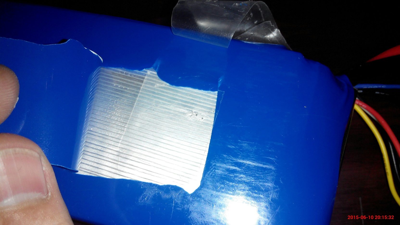 После этого батарея с проблемной ячейкой была извлечена. Наблюдалось небольшое вздутие и повышенная температура (думаю порядка 37-40 грудусов). В принципе, все четыре сборки были одинаково наргеты. На теплую было произведено повторное хирургическое вмешательство для откачки газов из проблемной ячейки :D .