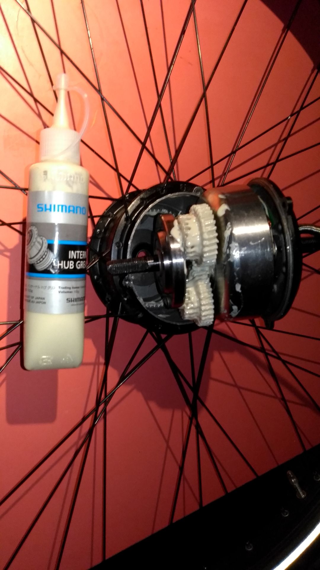 Жаба болотная была задушена и за десятилетие смазка подешевела (курс японской йены упал?). Была куплена специальная Shimano Internal Hub Grease Y04120800