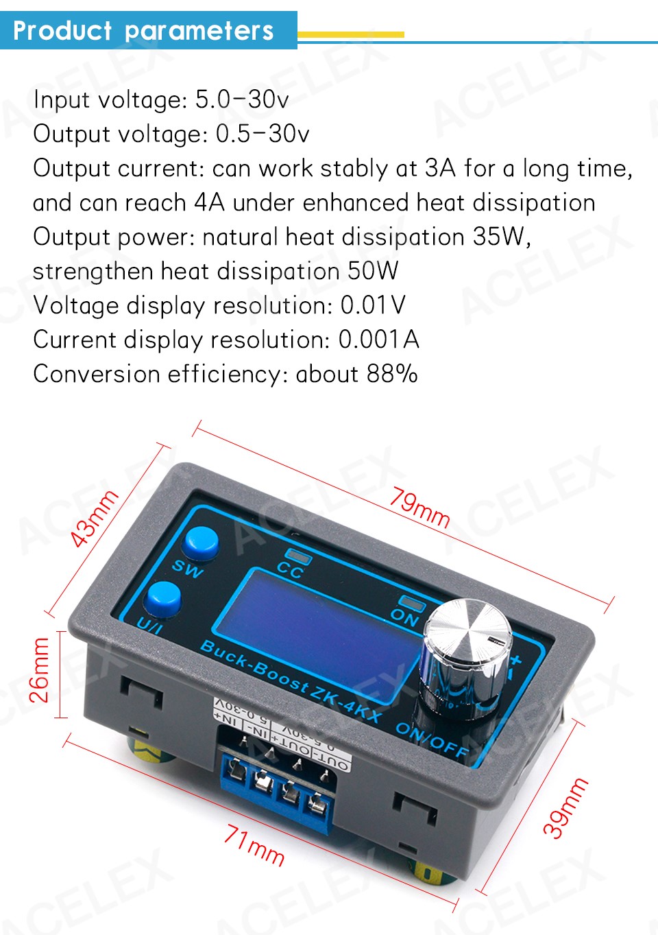 Оптимально 18 вход,выход 21 В,чем ближе входное и выходное,тем меньше разогрев платы. Снизу к плате крепится радиатор,идет в комплекте с платой и зажимами контактов. Опционально на плате есть разъем для 12 В фена обдува процессора. Можно установить самостоятельно,если через модуль идет высокая мощность.