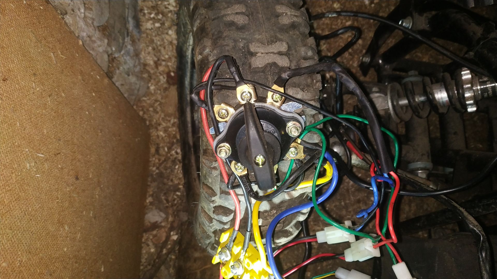 Щосьдуже багато проводів на перемикачі, туди приходить синій і жовтий силові вихід з контра і чорний і червоний од мотора, і треба 2 перемычки-все.