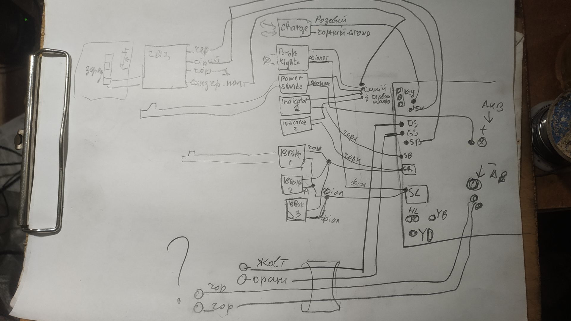 Перший . не получаться в мене запустити контролер мотора YKBYCY12, точніше не зміг знайти інф. за , що відповідають 4 дротика в окремому кембрику чорний 2 шт, оранжевий та жовтий . Пробував їх прозвонювати , міряти потенціал який небудь відносно мінуса та плюса немає нічого. Думав можливо то для додаткової блокіровки, (пробував через ламкочку коротити їх, ні ) , думав що це для обмеження швидкості (L M H ) але там три дротика ... не розібрався.
