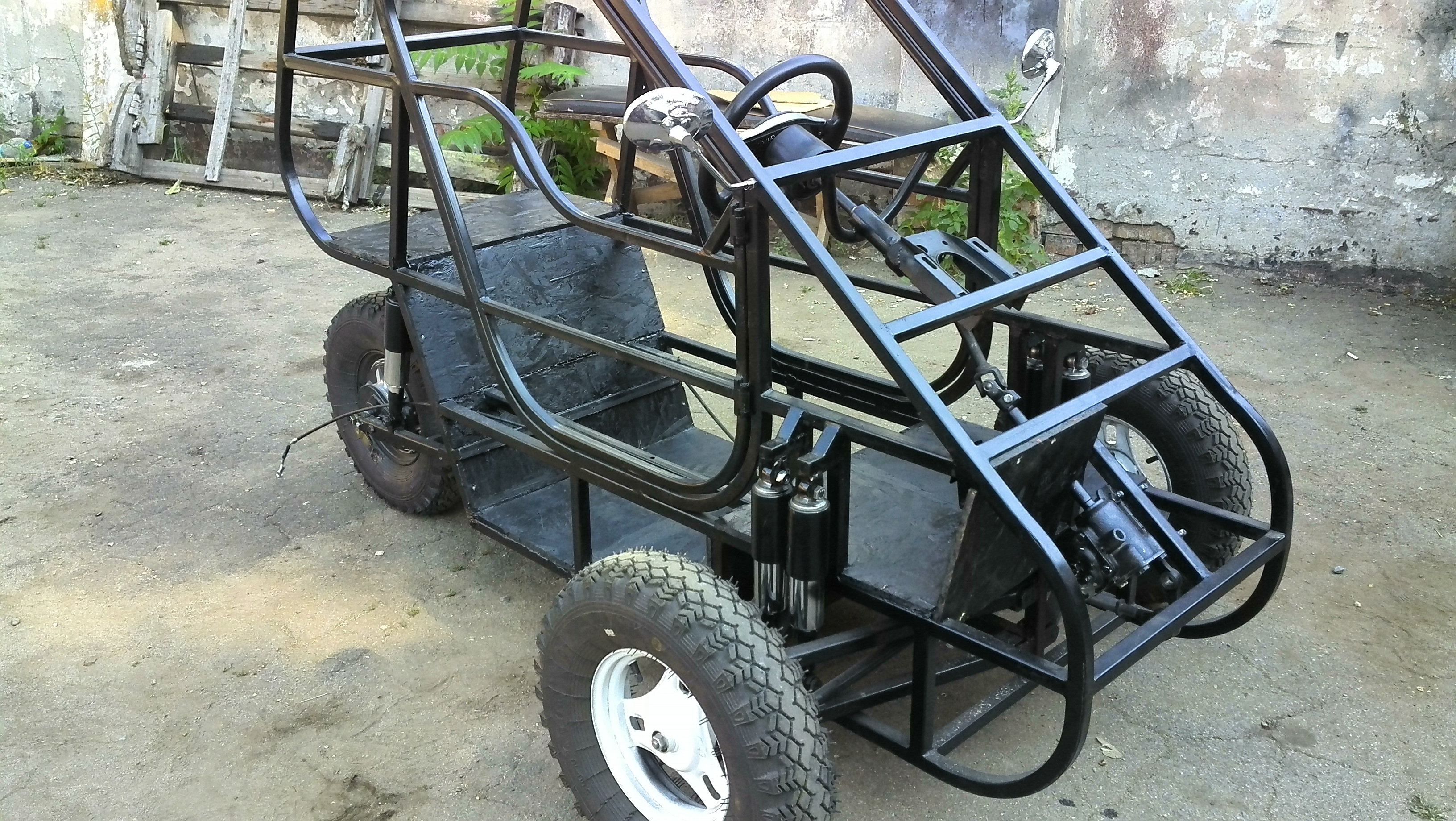 Кабинороллер Страйк снова на ходу с закрепленными должным образом аккумуляторами, сидением и поликом с утепленным ленолеумом под ногами. Изменения задних маятников подвески положительно отразилось на ходовых качествах аппарата, трамвайные переезды средней паршивости теперь можно пролетать не притормаживая, а на лежачих полицейских притормаживать а не переползать.