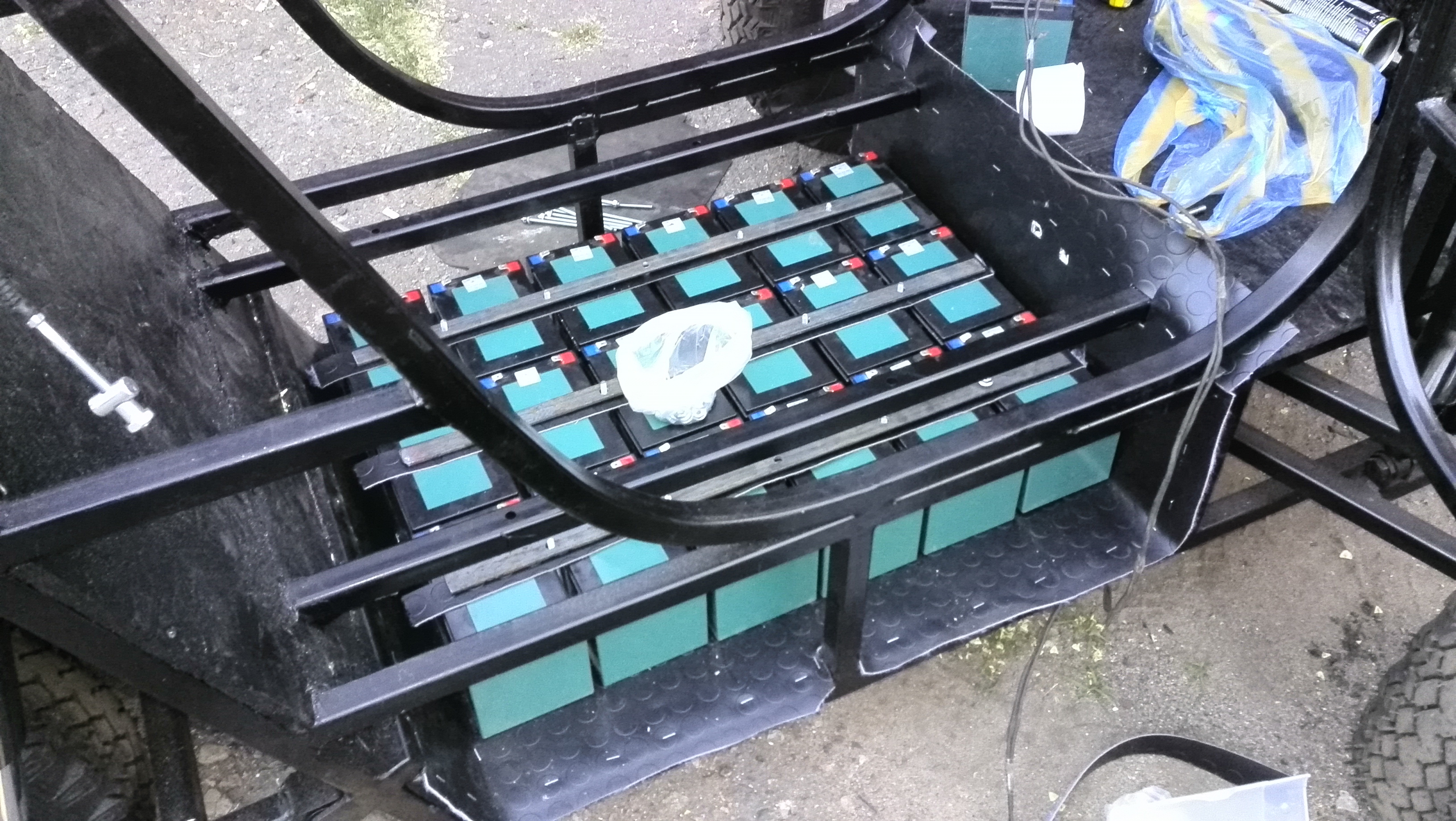 Постелили утепленный ленолеум и закрепили аккумуляторы в аккумуляторном отсеке.