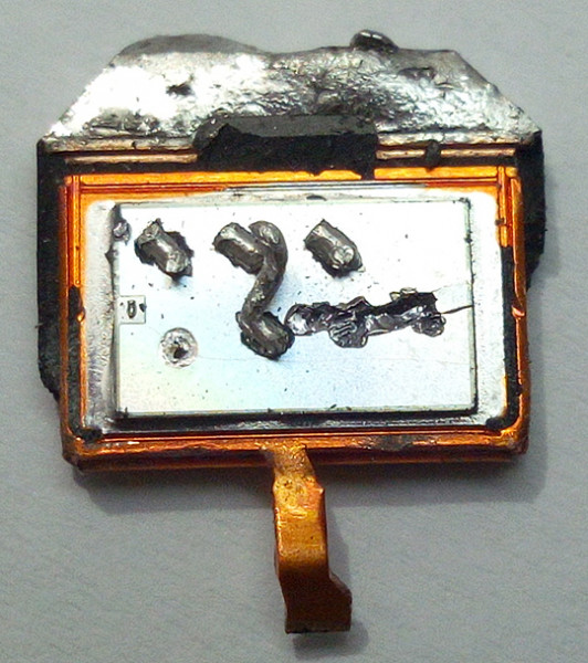 Якщо комусь цікаво, нарив в арівах) колись випадково також вбив мосфет ірлб3034 через затвор і вирішив його розковиряти. Оригінал. Дивіться на розмір кристалу 8O