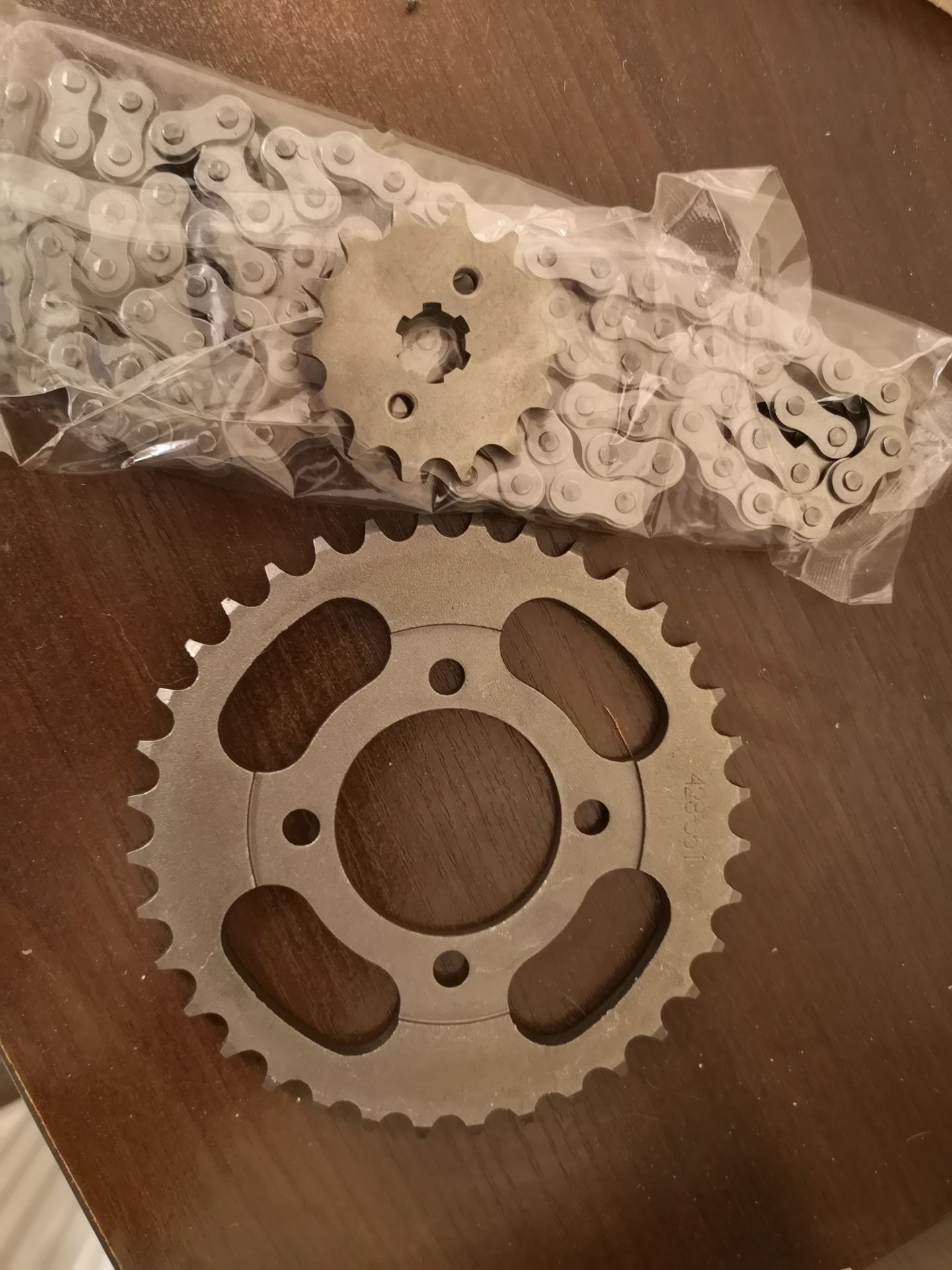 Так же недавно мне пришли мотокомпоненты, заказывал на мотоквартале, удивило то что заказ собирался неделю, а я думал, как и везде, на следующий или через день отправят. Но мне спешить было некуда, заказывал я звезды с цепью, планировал использовать мото звезды с мотора на пром вал, + увеличить редукцию взяв в качестве ведущей 14т, но, как и ожидалось - она уж очень маленькая, накрутить ее к креплению дискового тормоза мотора вряд ли получится если не увеличивать внутреннее отверстие, а толщина звезды там немаленькая. В общем как обычно просто потраченные деньги, 2 звезды 100грн и цепь тоже около 100....но отложу их на будущее, возможно когда-то будет другой мид уже с мото цепью)