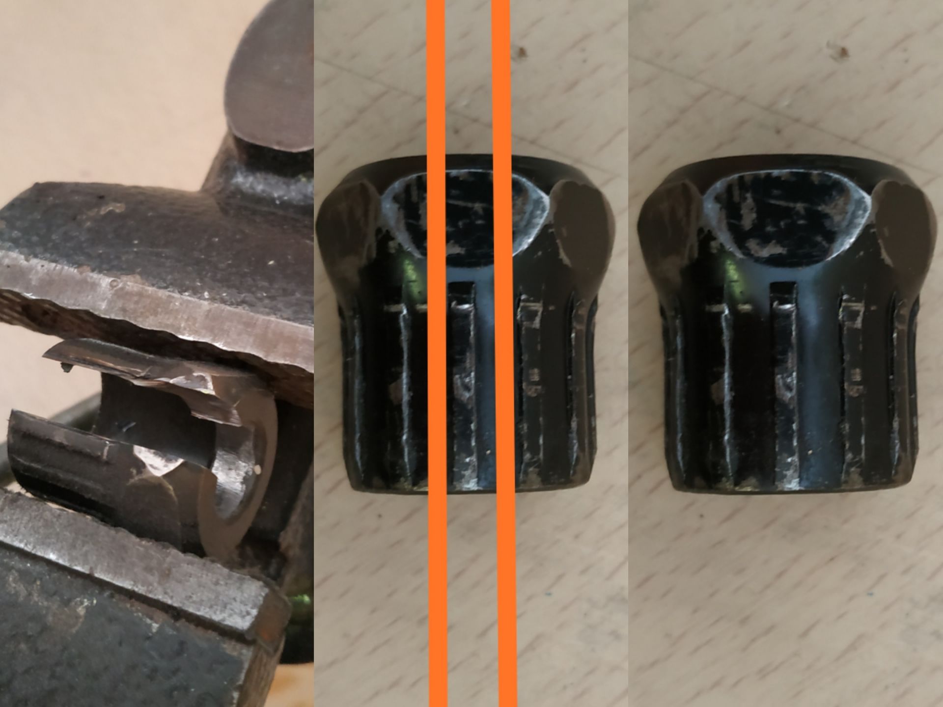 В итоге разобрал трещетку (не забываем что ее внутренняя гайка с левой резьбой), но ее основание так и не мог снять - завтра поеду побираться по сто/шиномонтажам на предмет тисков.