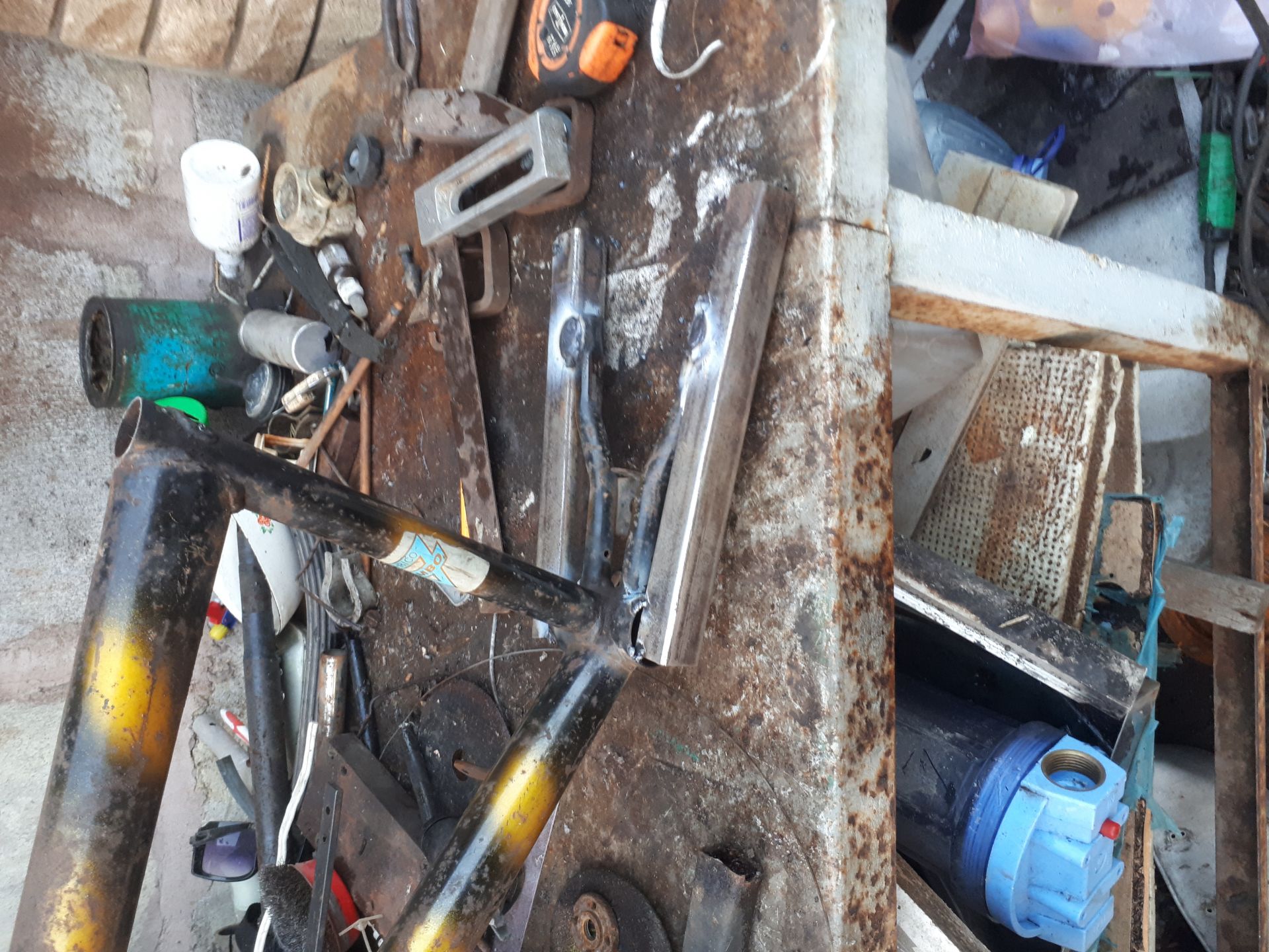 Доброго времени суток уважаемому сообществу.Решил младшему сыну сделать электротранспорт для домашних покатушек. Сразу была задумка переделать его педальный авто, но поразмыслив решил остановится на трайке. В металоломе валялся старшего сына вел на 20" колёсах.Его и начал пилить.