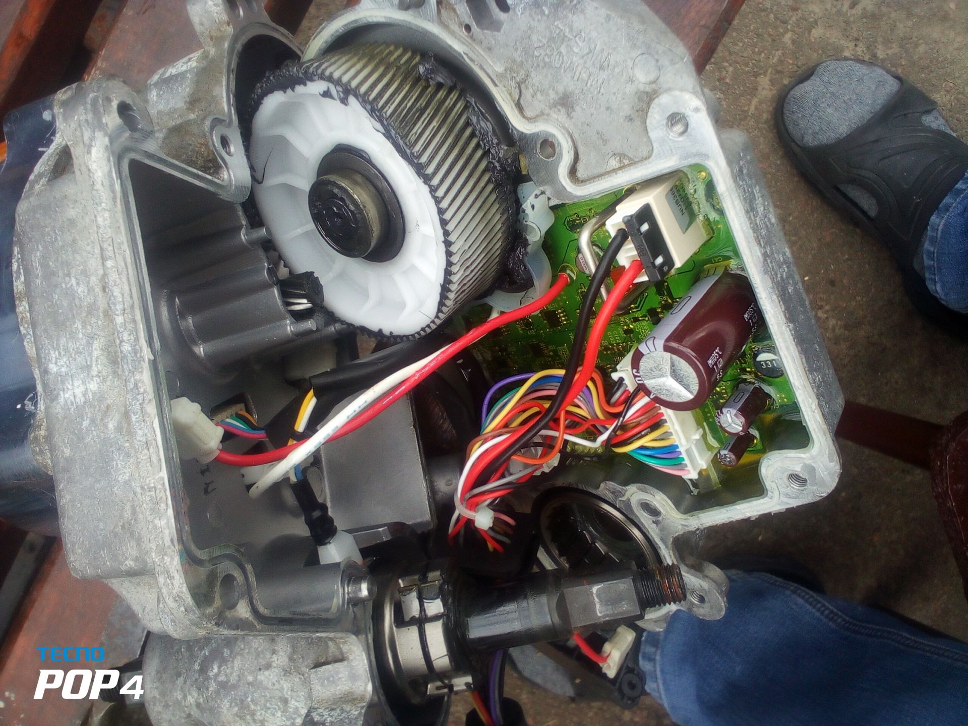 Тепер по моєму велосипеду. У нього ремонту потребувала тільки механічна частина (поміняти зірочки, ланцюг і т.п.). Відремонтував. Покатався з асістенсом. Не дуже сподобалося. У такого вела низькувато розташовані педалі, на поворотах іноді чіпляю за землю. Став переробляти під ручку газу щоб їздити як на мопеді. На вищевказанному форумі є інформація як працює датчик моменту на педалях. Підключив ручку газа до нього через саморобний адаптер. Поїздив. Не сподобалося. Штатний контролер має обмеження по макс. швидкості у 25 км/г. А так як він не знає яка передача ввімкнена, то тупо обмежує оберти на любій передачі. Тому їзда на низьких передачах дуже некомфортна - наберає оберти, а потім сам скидує. Пішов далі. Розібрав двигун, викинув штатний контроллер і засунув туди плату від дешевого контролера з Алі. Поки катався зовсім мало, дощі не дають добратися до якісного асфальту. Тому про максимальну швидкість поки не скажу. 20км/ч точно набирає. При цьому запросто стартує і з 5-6 передачі (в мене планетарка Шимано на 8передач).