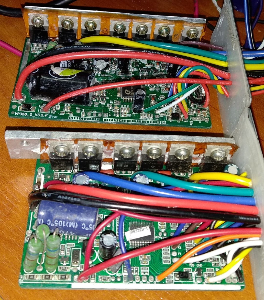 При замыкании его на "землю" должен включаться реверс. Должен. Однако включается он почему-то только на двух контроллерах, третий не меняет направления, продолжает вращать колесо в ту же сторону, что и крутил. Рекуперация работает на всех трех контроллерах, правда только слабая, провод на сильную рекуперацию при замыкании на "землю" не даёт никакой реакции. Кто знает куда копать, то подскажите.