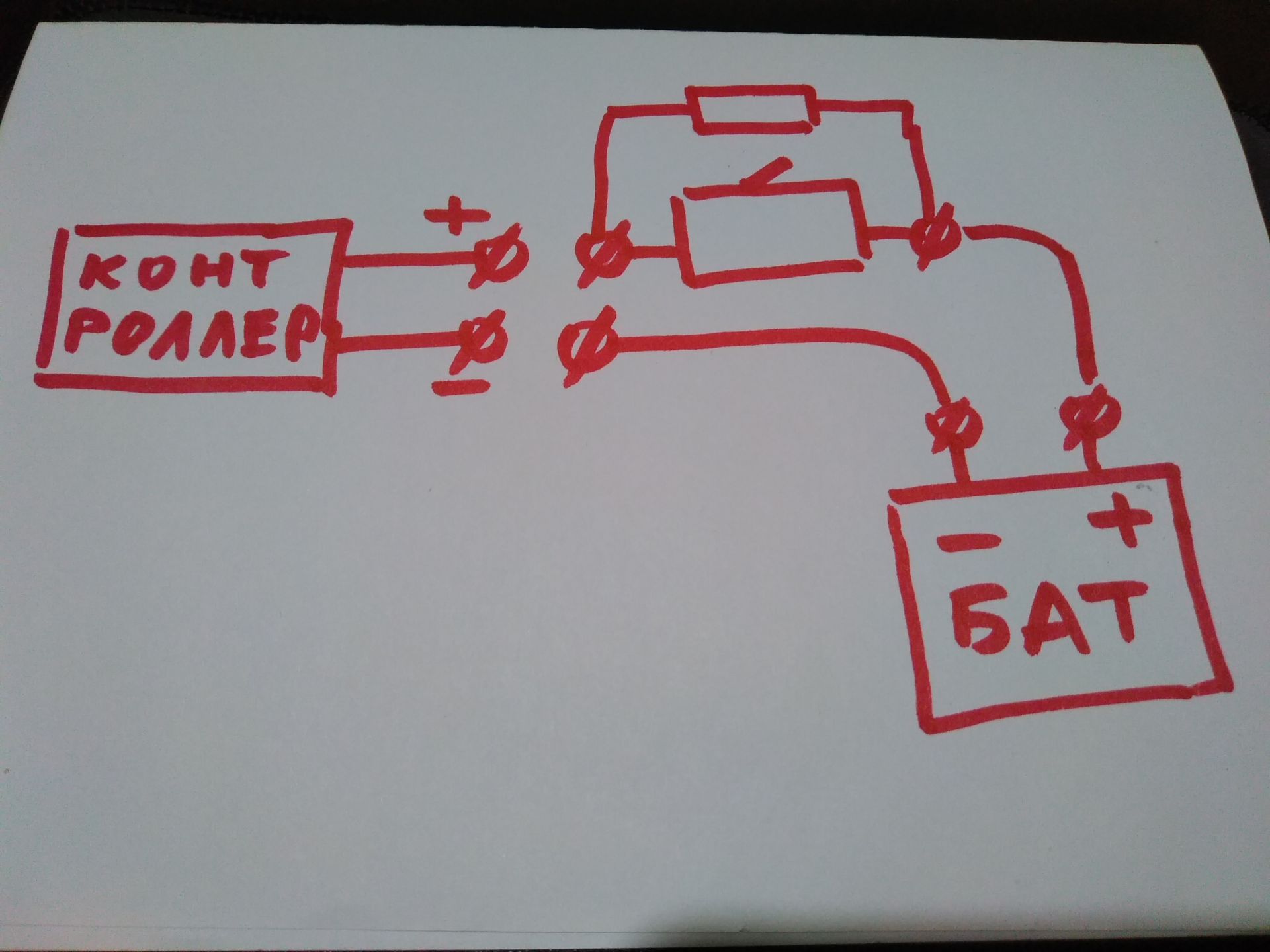 Якщо електрична схема має спільний мінус з іншими пристроями, то розрив силового мінусу зазвичай призводить до вигорання сигнальних ліній тих пристроїв. Тому рвати тільки плюс! Якщо в схемі крім контролера більше нічого немає, то абсолютно не принципово.