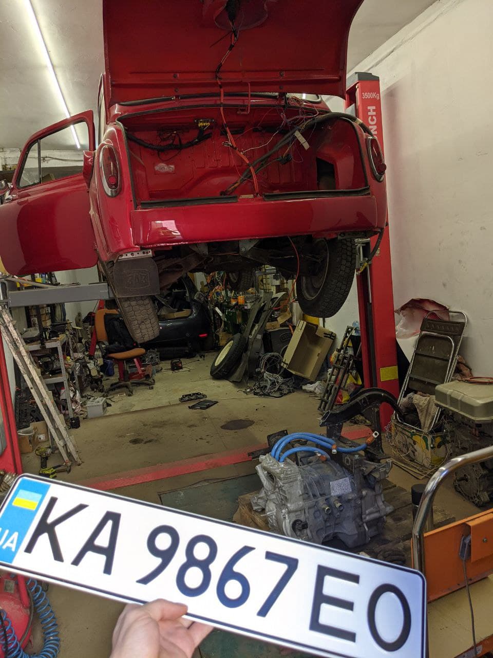 Начал подготовку с переоформления Горби на себя, взял доверенность от владельца прошлого на отца, пока разобрал зад чтоб перевесить лиф мотор, привез его родной двс, и снизу на гидростоле поставил в моторный отсек, приехал эксперт с сервисного центра, отфоткал машину у меня в мастерской. На след день приехал в сервисный центр переоформить Горби, но вылезли сложности, так как в номер кузова в 2009 году вписали и номер шасси. В итоге отправили запрос в Тернополь, чтоб они у себя в базе поменяли на правильный номер и я поехал домой, а через 5 дней приехал снова, уже получил номера и написал заяву на переоборудование. Ура, Горби официально стал моим!