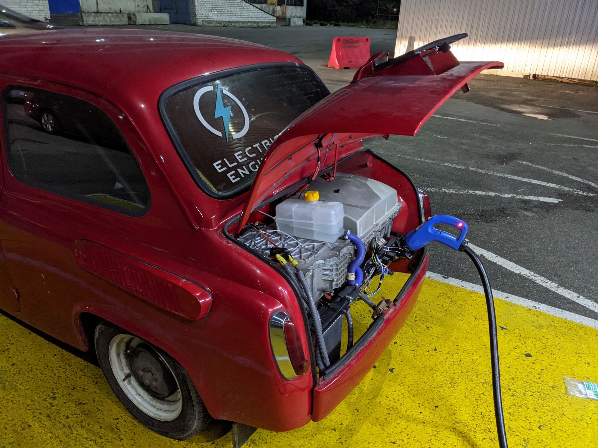 После получения номеров, до пробега осталось 2 дня, а в Горби даже мотор не стоял, в итоге за 2е суток я доварил кронштейны мотора и блоков сзади, покрасил, поставил мотор, решил все проблемы с редуктором, поставил инвертор и зарядник, поставил порт чадемо.
