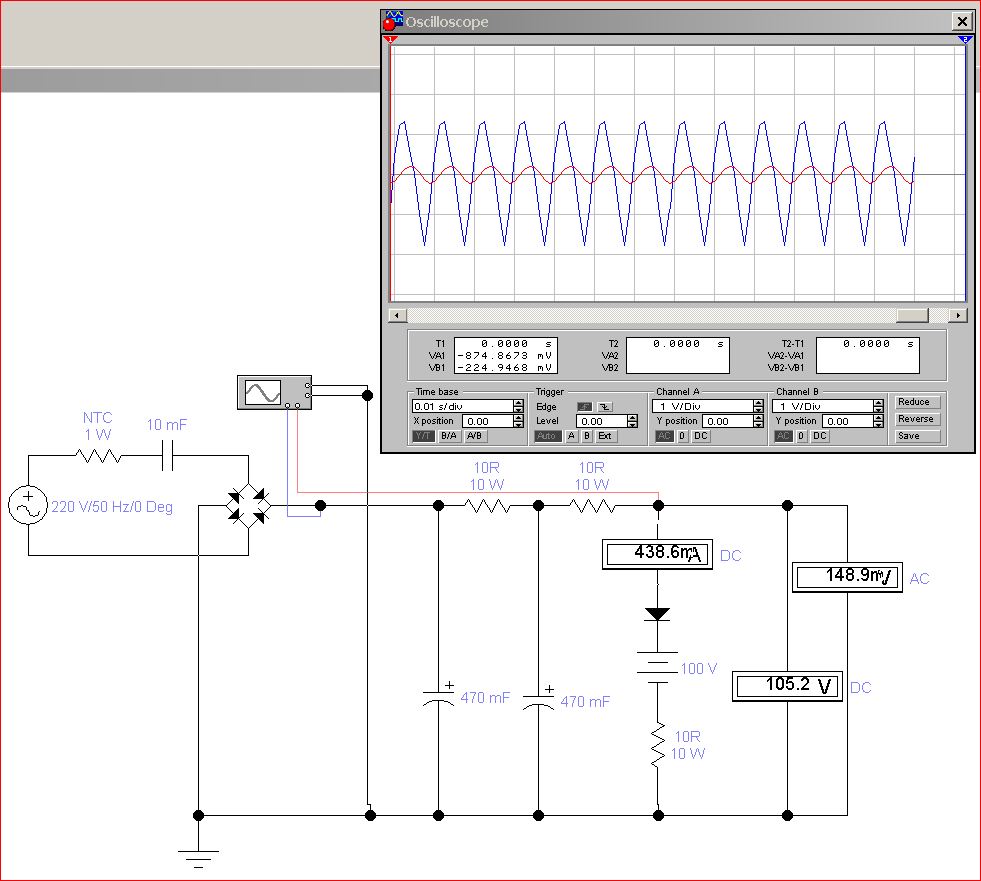 три последовательные детальки: диод, батарейка на 100в и резистор - это иммитатор трех последовательно включенных светодиодов из этой темы