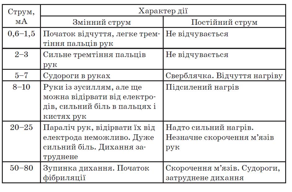 Характер впливу електричного струму на організм людини: