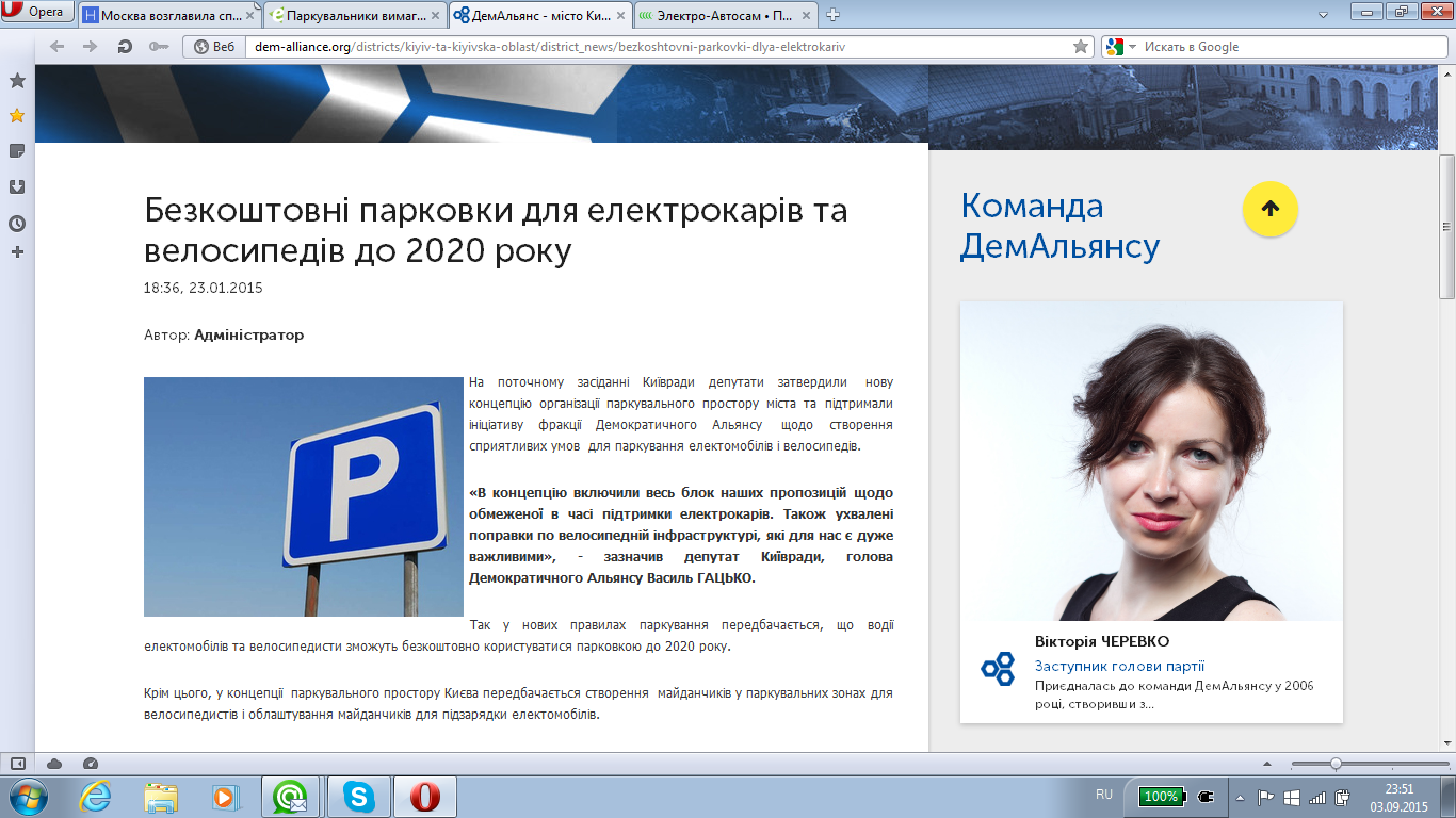 Заголовок повідомлення: "Бесплатная" парковка электромобилей.
