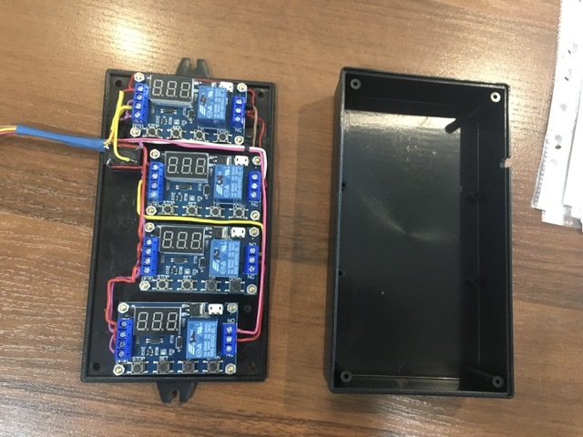После долгих терзаний всё таки решил делать все «по науке». Смонтировал логику управления зарядным устройством. На тех программируемых реле времени которые показывал папу страниц назад. Переделывал правда схему пару раз, уменьшив количество доп реле до одного.