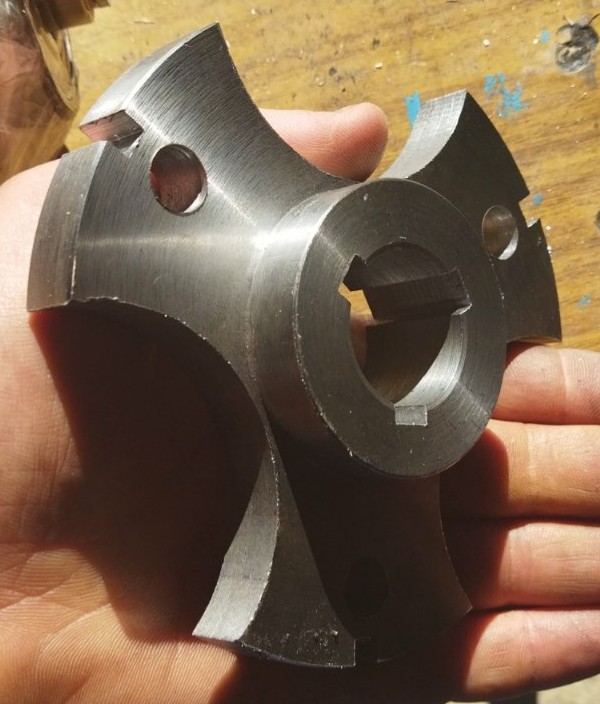 Фланец отменяется. Точнее отменяется вазовский. Тому причин не мало. Одна из них это полый вал и было решено оставить его в покое, но надолбать пазы под шпонку и нарезать резьбу под гайку. На том и порешали))) Размеры фланца меряли по родному, толщина лап осталась как в родном. Скорее всего надо будет подрезать резьбу вала после того как закрутится гайка но это будет видно по месту.